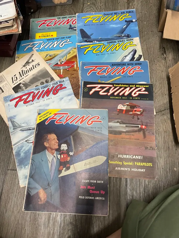 FLYING 1952 Magazines - 1 Without Cover Also, where, but the covers are all included on the others – binding is in rough shape on all of them, but all pages are connected