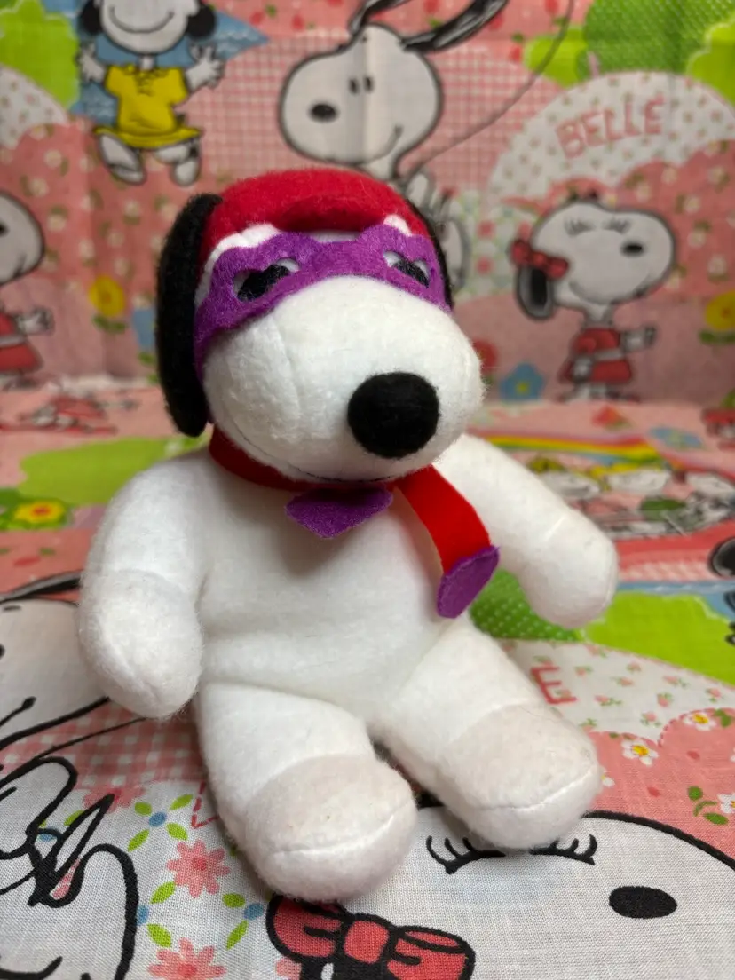 Vintage Snoopy plush made by Determined Productions for Whitmans. This one has a white body with purple and red hat/scarf/glasses. Made of fuzzy material. Would be a super cute addition to any collection!