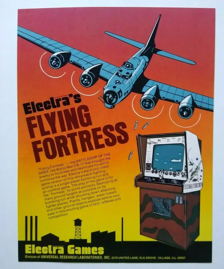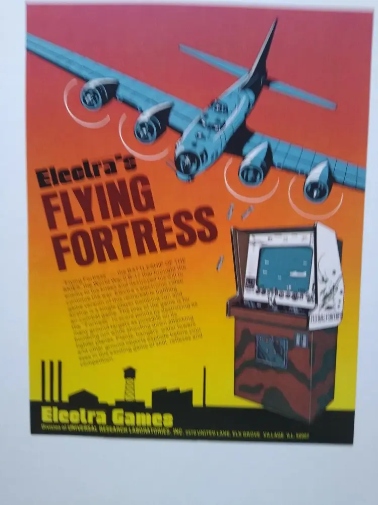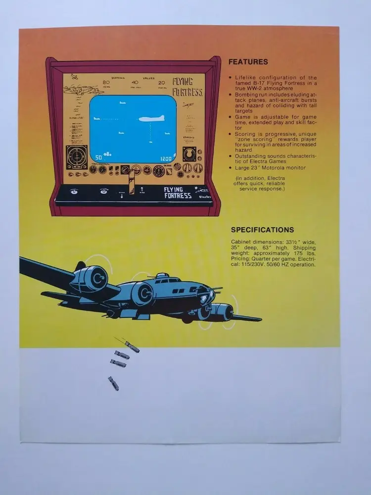Arcade: Flyer Theme: Combat Modified Item: No Country/Region of Manufacture: United States Original/Reproduction: Original Year: 1976 Game Title: Flying Fortress Brand: Electra Games