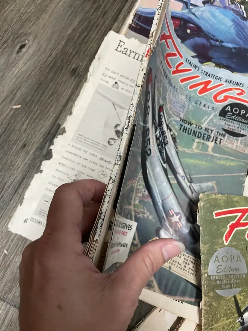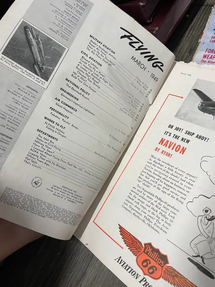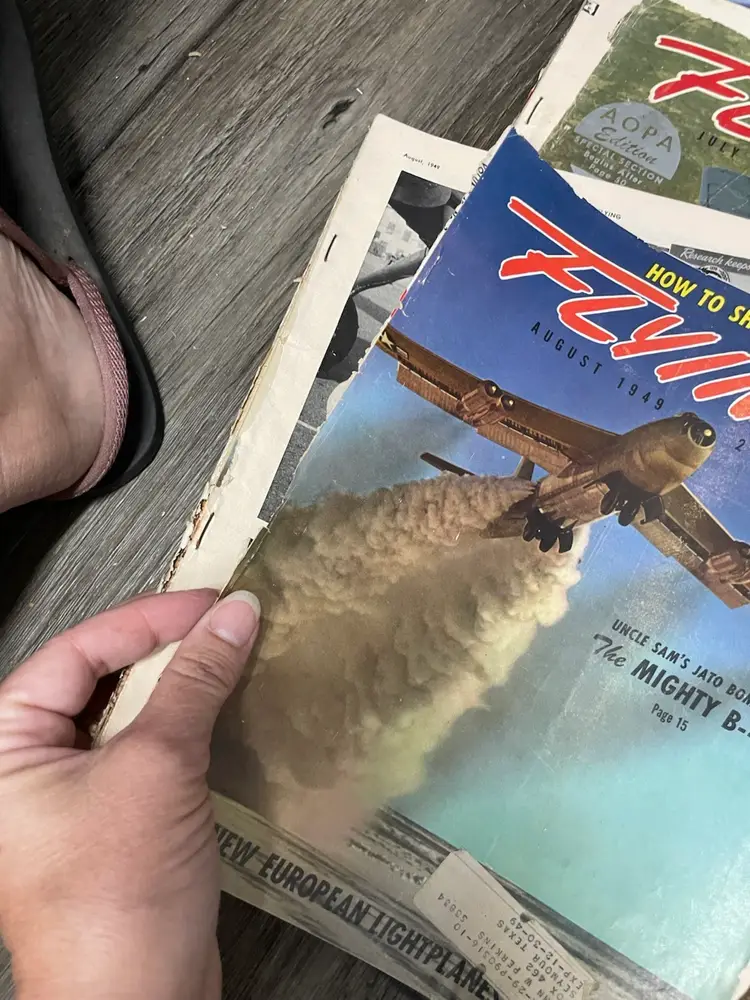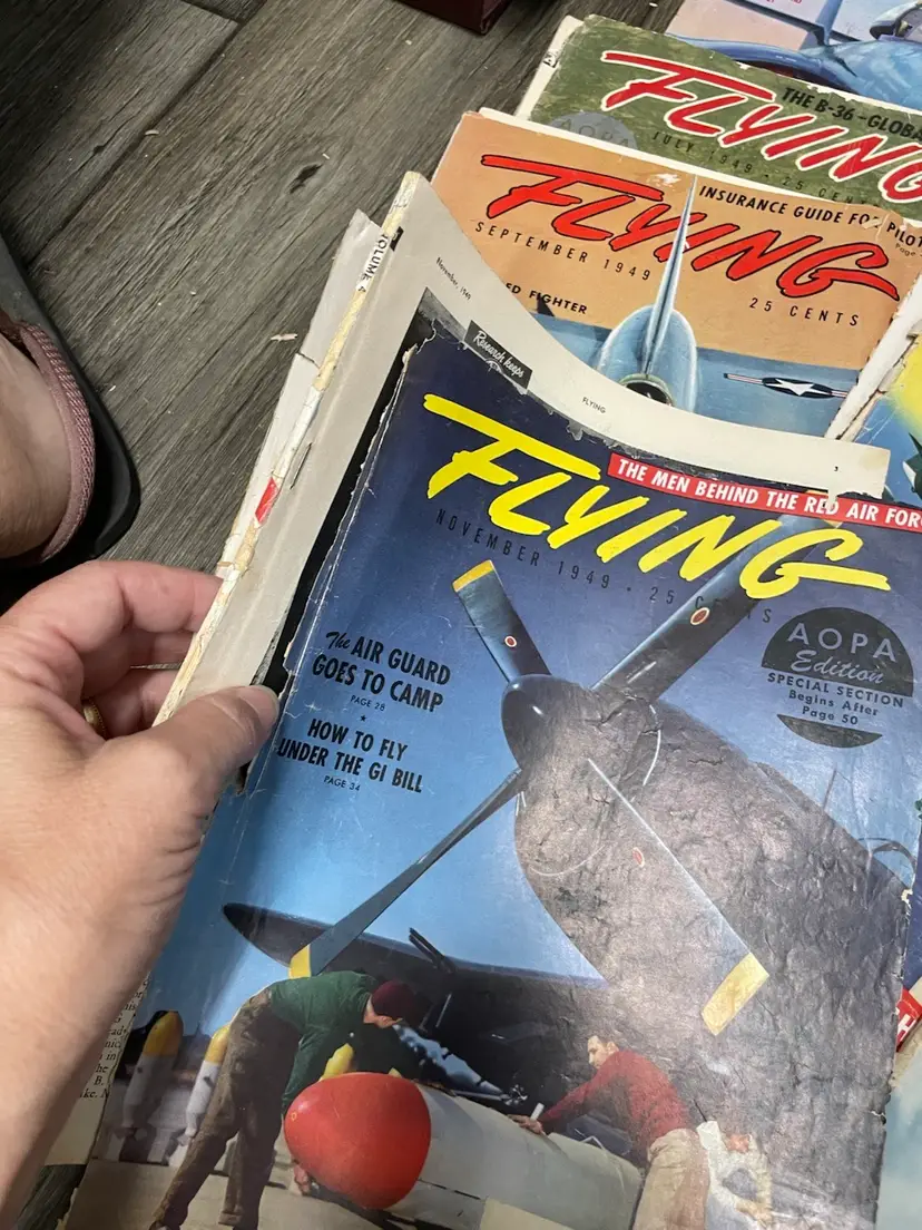 Flying magazine 1949. September issue is missing the back July is missing the back. Most of them have the front and back covers loose and in very rough condition.