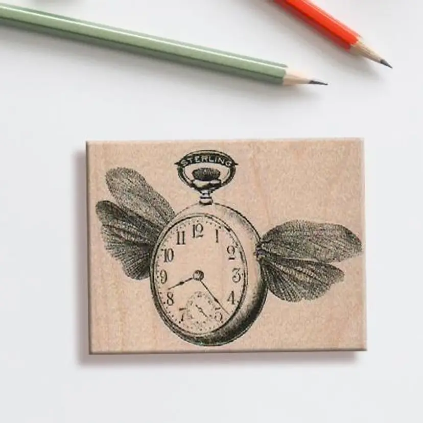 Flying Watch Rubber Stamp Size: 3 x 2-1/4 inches Red Rubber Handmade • Great for card making, scrapbooking, journaling and crafts