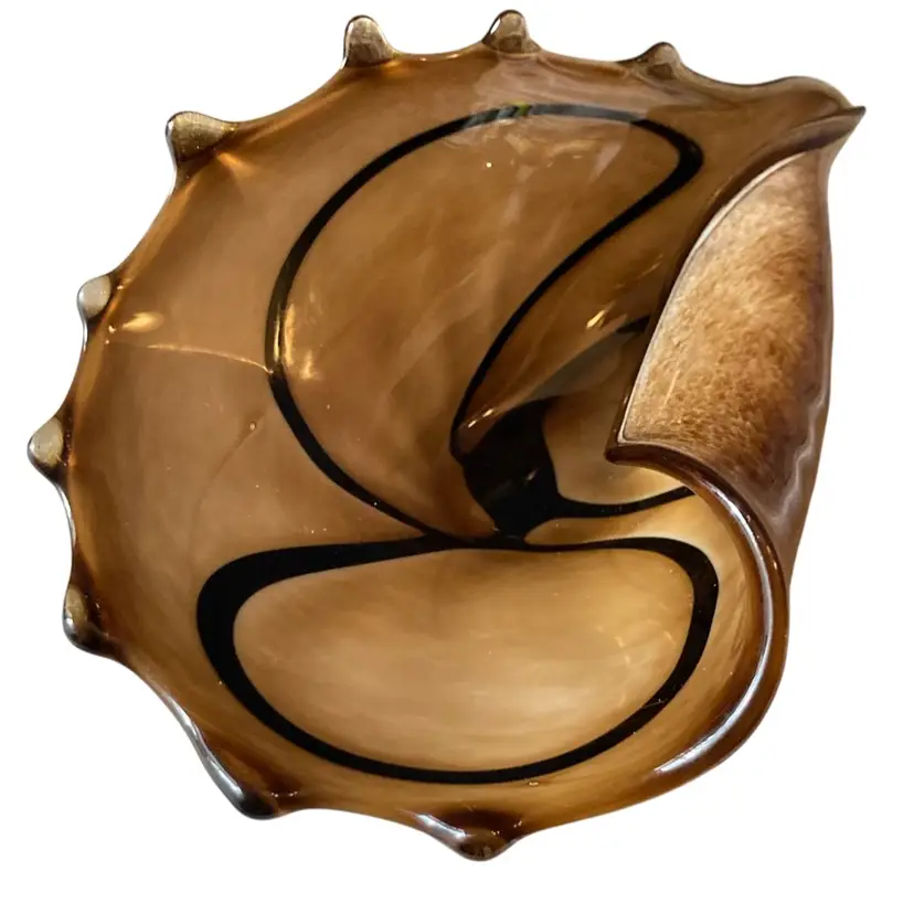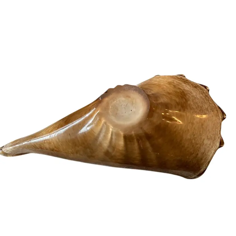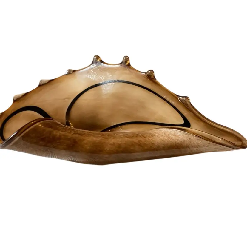 7.5” long, 5” wide, 3” tall beautiful art glass conch shell n perfect condition.