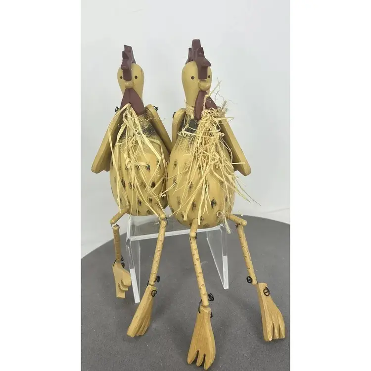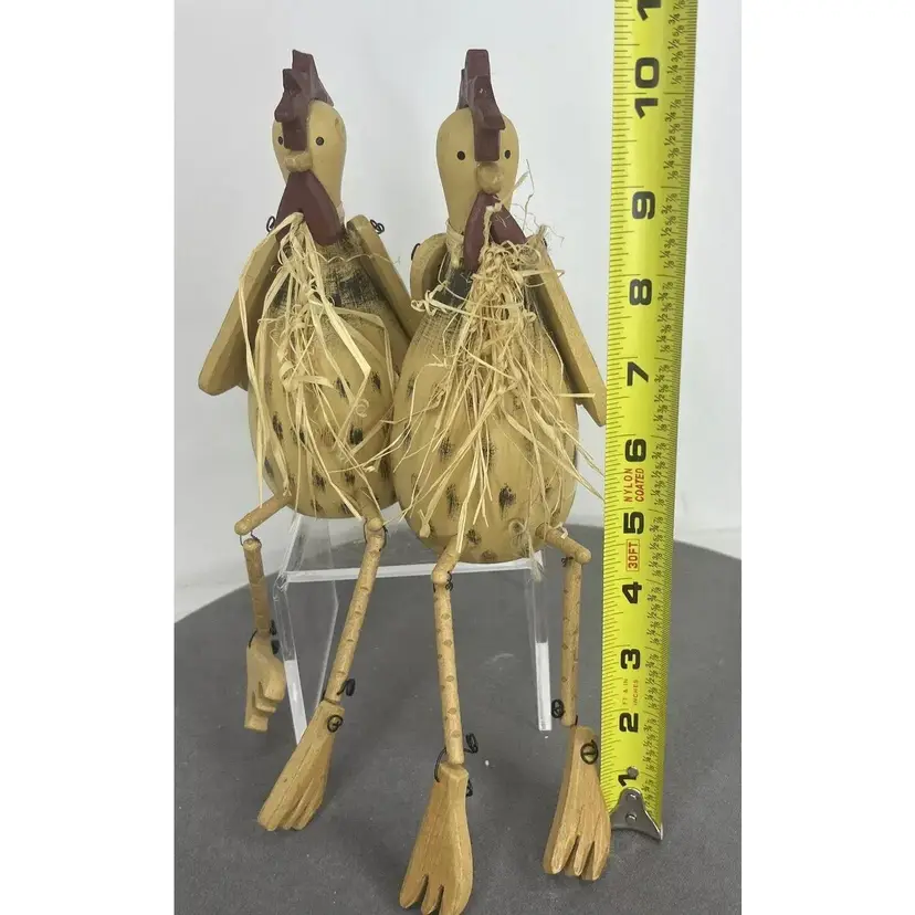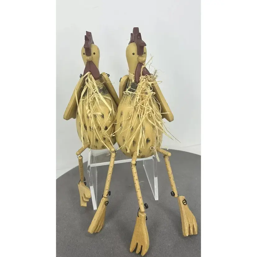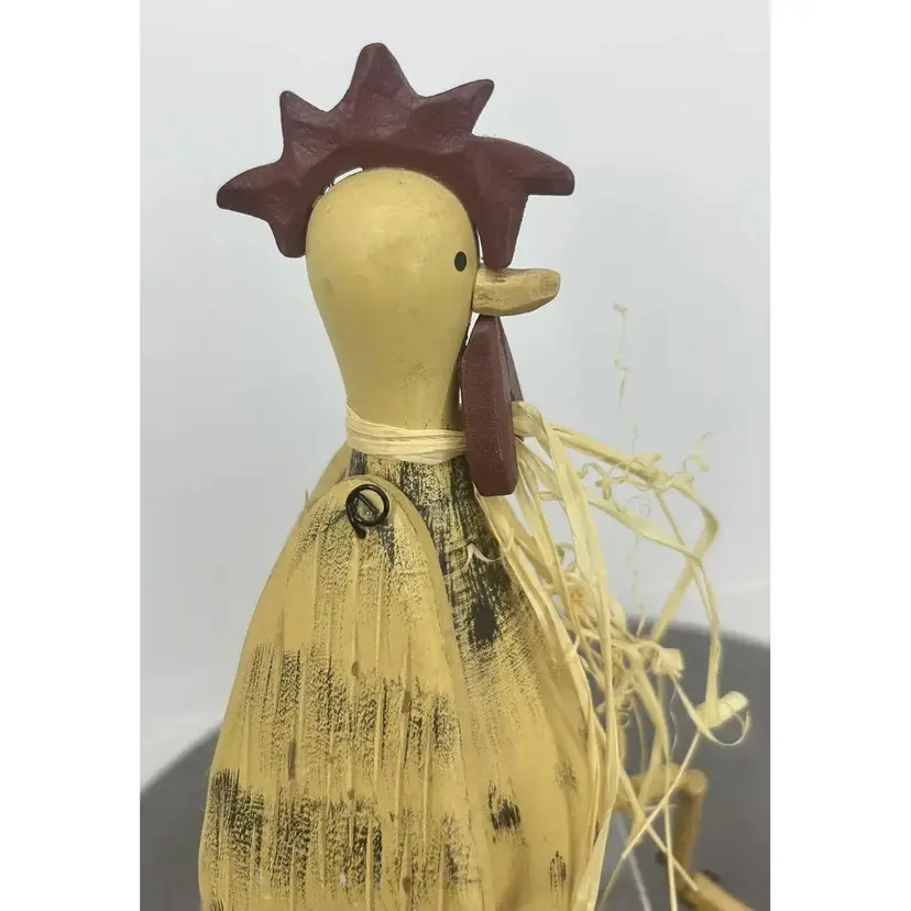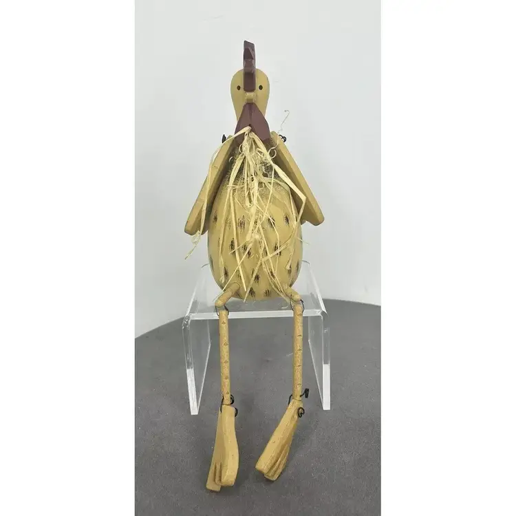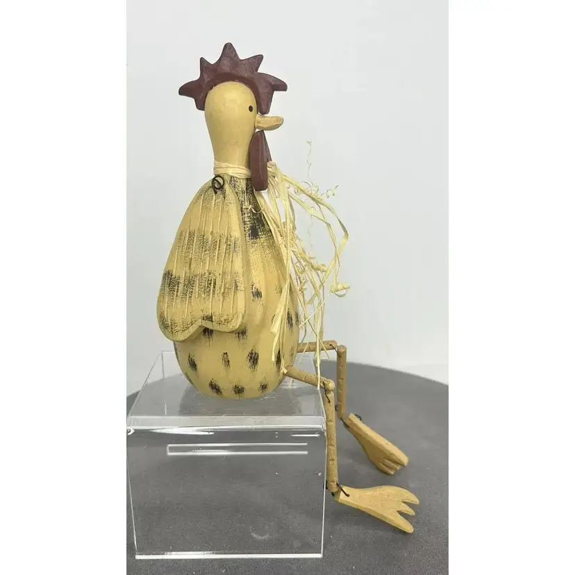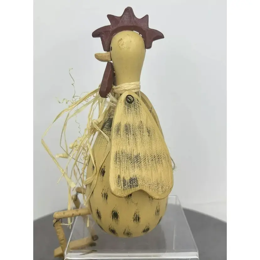 Folk Art Chicken Rooster Shelf Sitter Hinged Legs Wings Carved Wood Hand Painted.