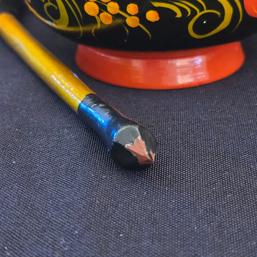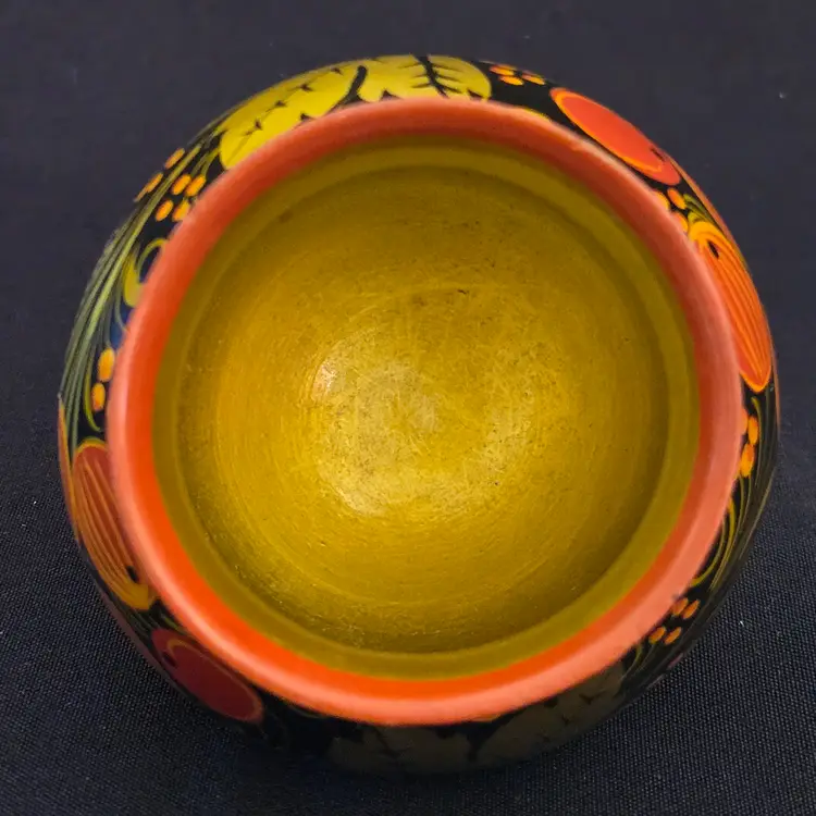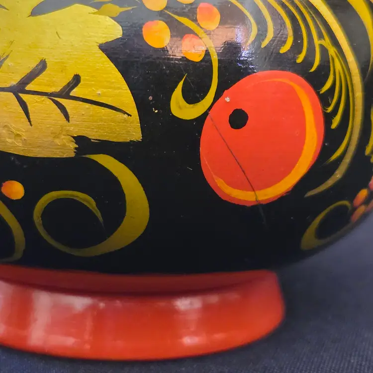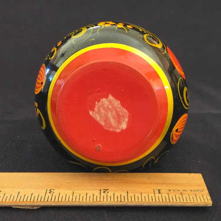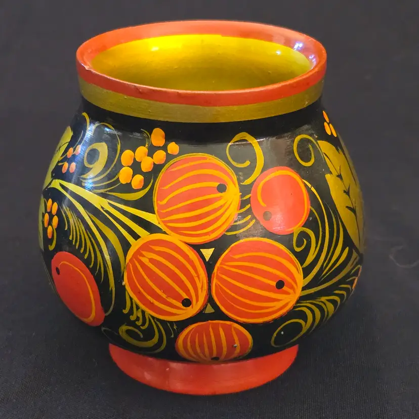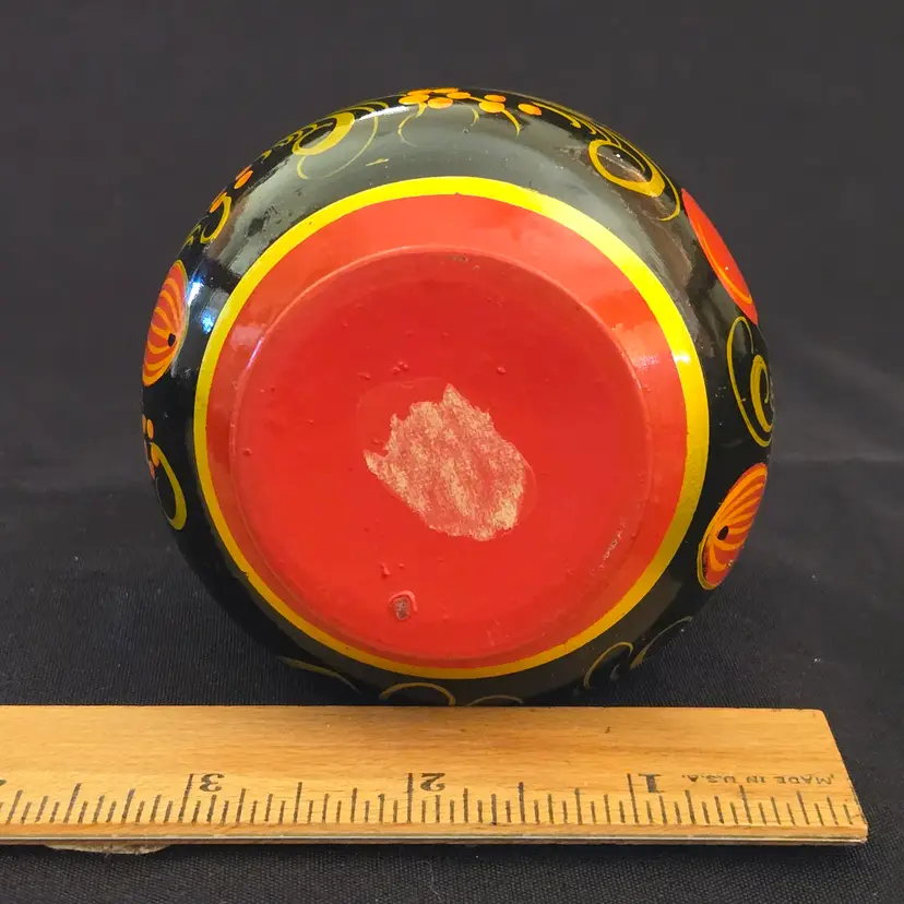 Folk Art Khokhloma Cup, Spoon Soviet Russian both Hand Painted Vintage with Condition Issues. Both have issues including dirt, edgewear, missing paint, spoon has problem with end looking as has been cut, cup has scratches, sticker residue. Please view all the photos and please ask any questions prior to purchase when possible.
