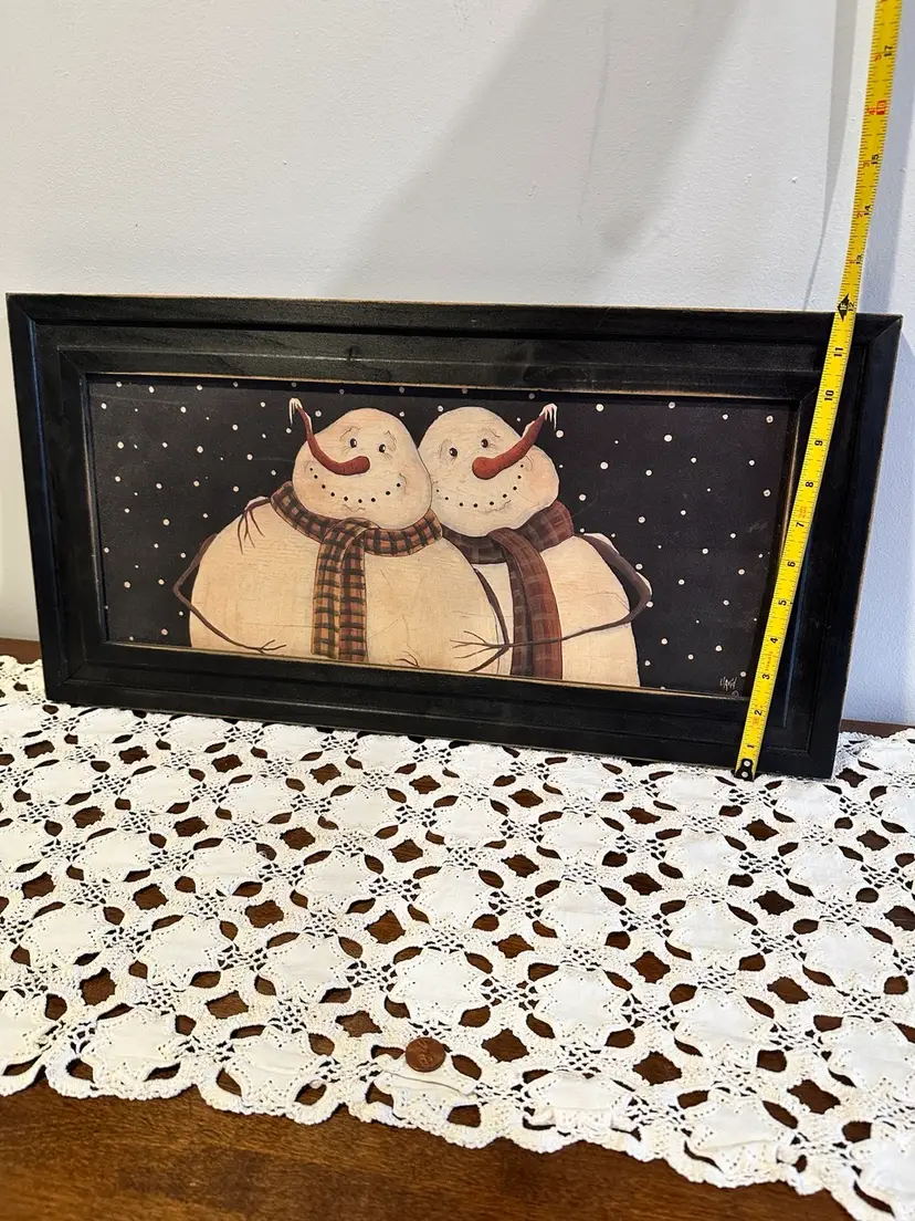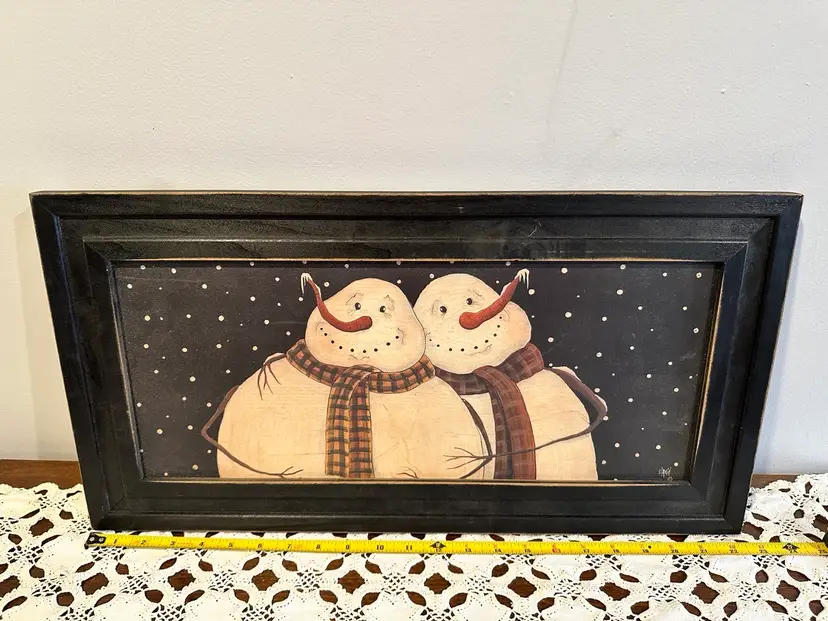 Folk art print of 2 Snowmen Signed by David. Approx 22”x12”