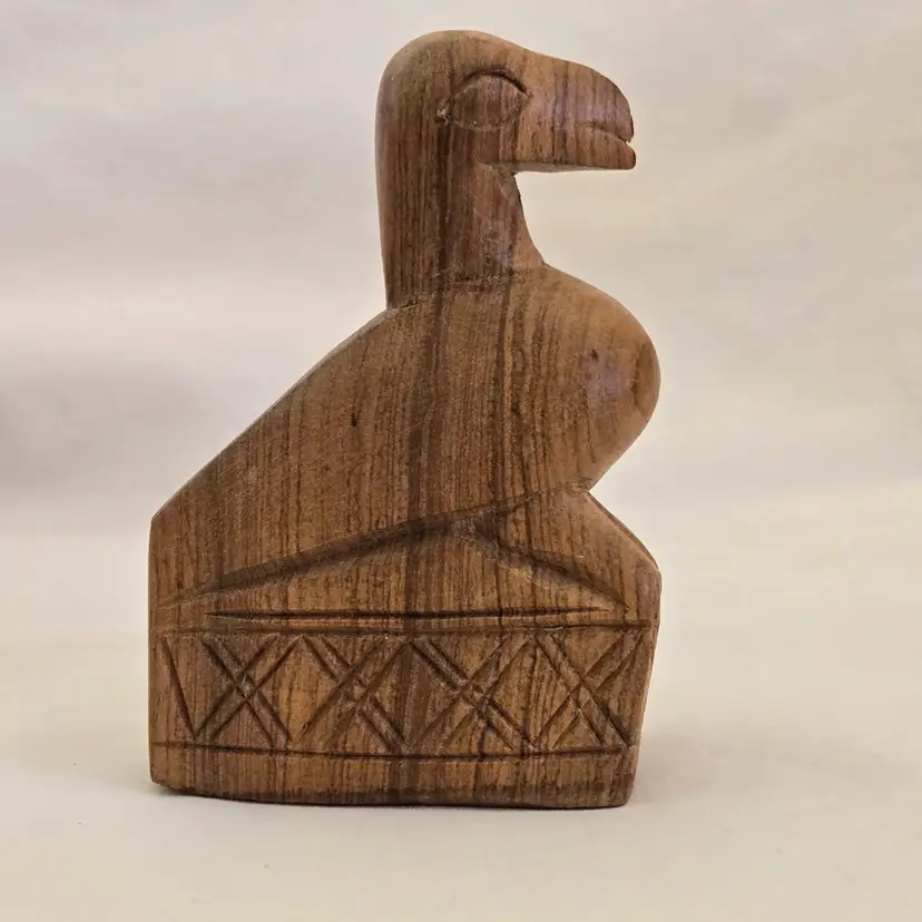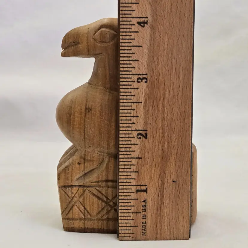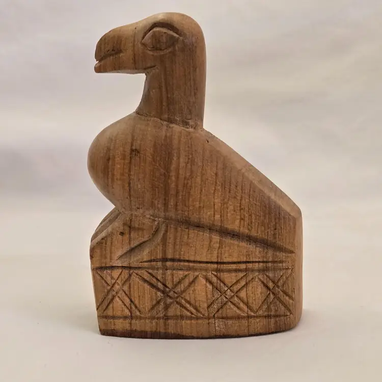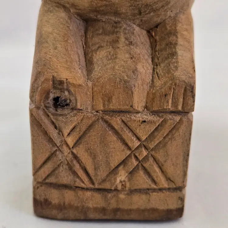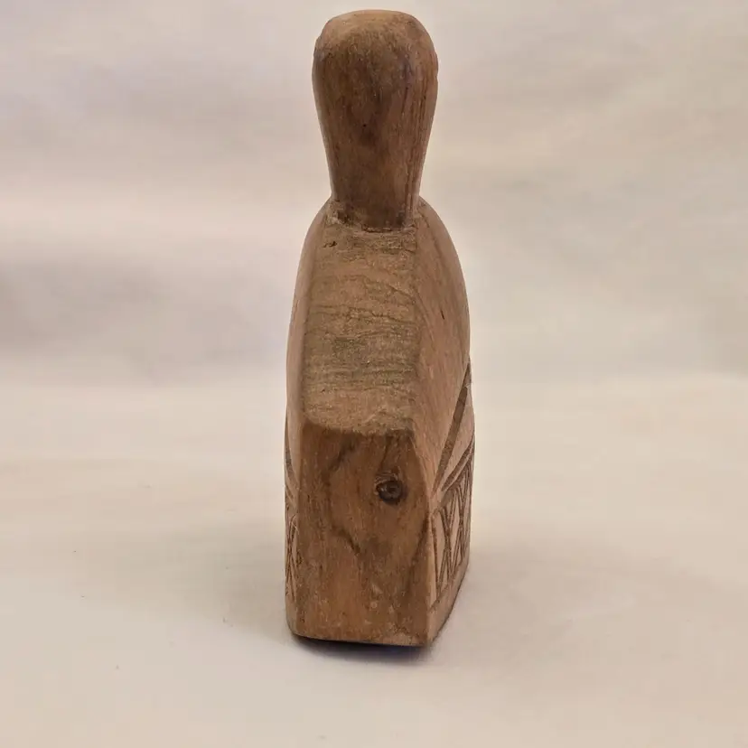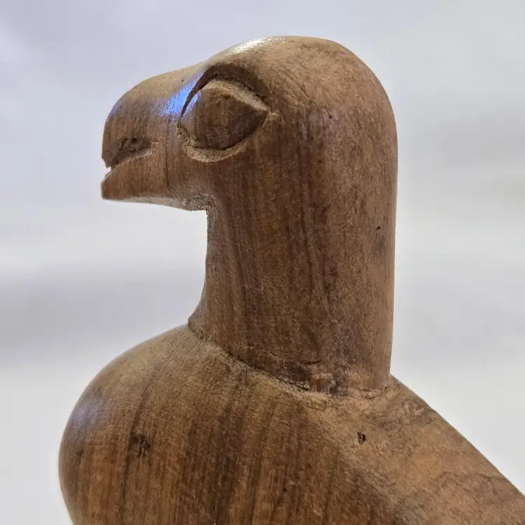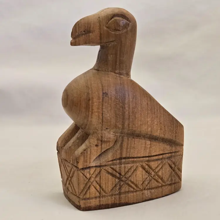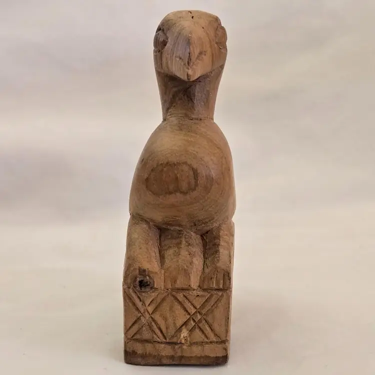 Folk Art Wood Bird Handmade Hand Carved 4" tall Unbranded Unsigned. Used condition with amateur hand Carved effect, knots in wood, dirt, stains, etc. Please view all the photos and read the entire item description and please ask any questions prior to purchase when possible.