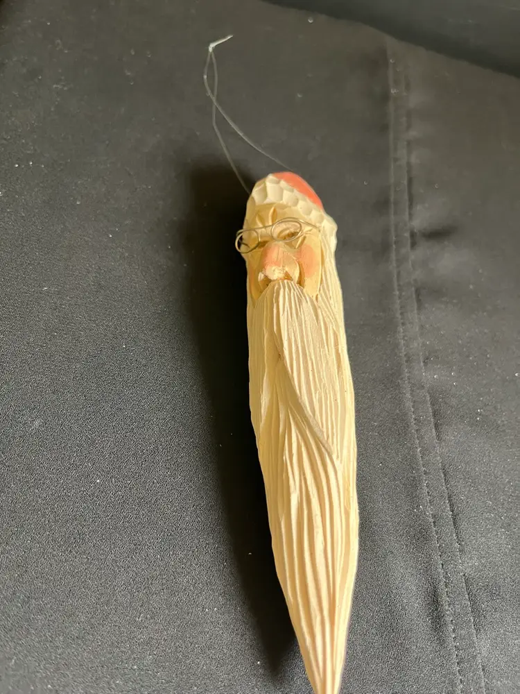 This is a great addition to your holiday ornament collection. What better than a skinny Santa? Is perfectly detailed. This is in excellent pre loved condition and has no call outs. Has wire for hanging. Measures approx 6"L, 1"W, 1 Oz