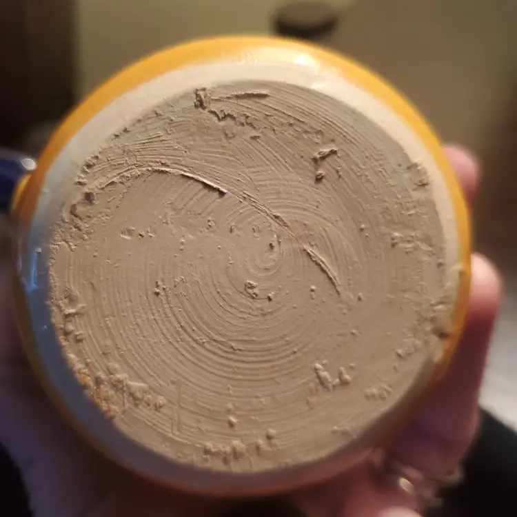 Handmade and finished off with a super nice glaze. This mug measures 3 1/2 " high and 2 1/2" across. It has an unfinished bottom.
