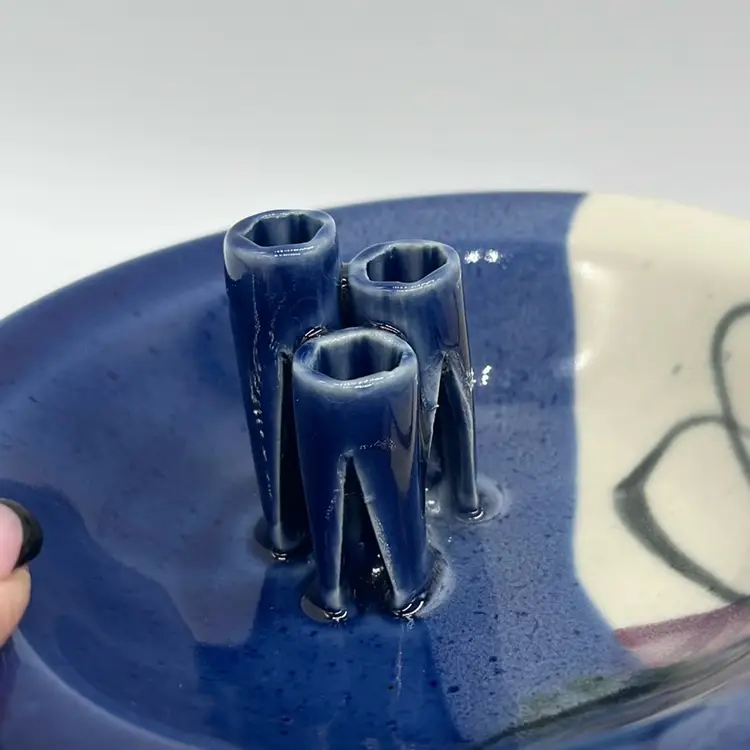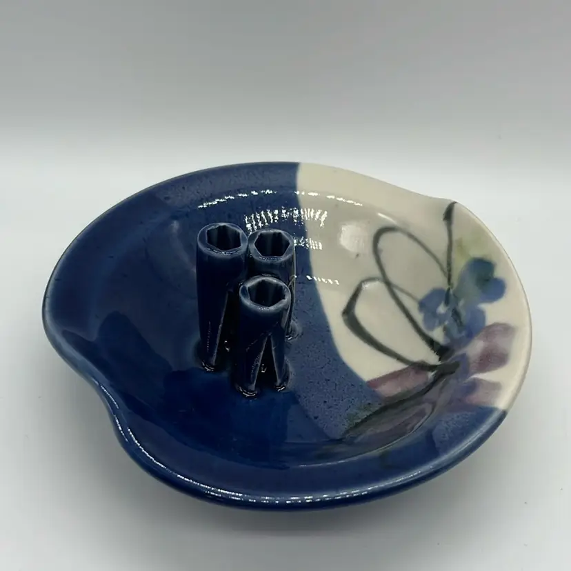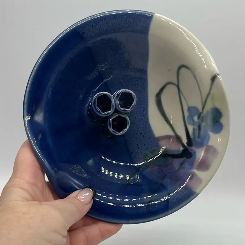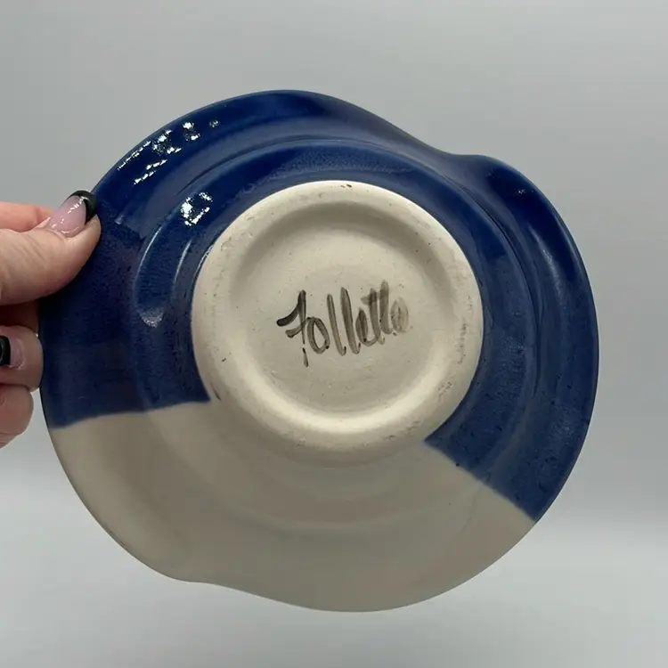 Follette Studio Art Pottery Flower Frog Ikebana Dish, Signed In great condition! No chips or cracks. Approx: 6” d x 2.25” h