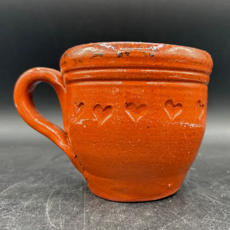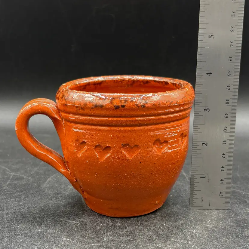 This gorgeous cottagecore/farmhouse chic vintage decorative redware coffee mug would make a lovely addition to any collection or the perfect gift for the favorite collector in your life! The item for purchase is in excellent pre-owned condition and shows no/minimal signs of use or wear. As pictured, there are several spots with small chips, particularly around the rim, otherwise the item listed is damage free and has no chips, cracks, stains or deep scratching.