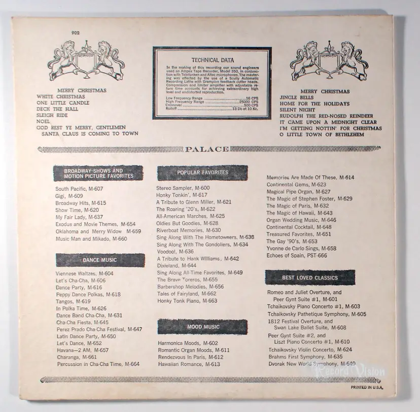 Merry Christmas, by Fontanna, released in 1958 on the Palace label, is a holiday record featuring a collection of Christmas standards performed with organ, chimes, and choral arrangements. The album is split into two distinct sides: Side 1, credited to "Organ and Chimes," likely features Jerry Maynard’s work, while Side 2 is attributed to John Clayton His Orchestra and Chorus, though the exact performers remain uncertain due to inconsistent labeling typical of Palace’s budget releases. It includes well-known tracks like Silent Night, Jingle Bells, and White Christmas, but none of these are noted as hit singles, as the album was more of a budget compilation than a chart-driven release. Historically, the album reflects the era’s trend of affordable holiday records, often reissued with varying artist credits, highlighting the sometimes murky production practices of labels like Palace and Masterseal.