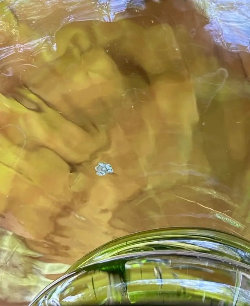 Approx 12.5”h (including lid) x 5.25”w. Great optics on jar and lid. One small chip on the inside of the lid. Manufacturer flaw on bottom of jar that appears to be in the glass and not perceivable to the touch. A couple of small bubbles in glass. See images as part of the description.
