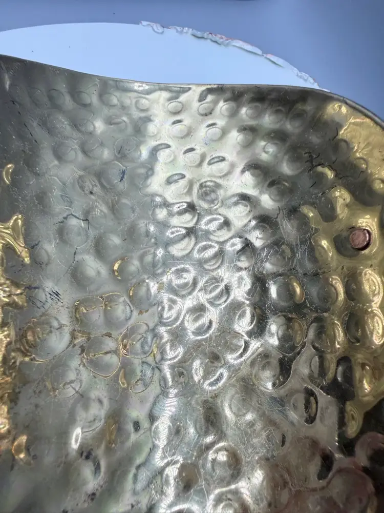 Brass with copper screws/rivets. Made in India. Great vintage condition with minor wear consistent for age. Replica of Log Basket Holder