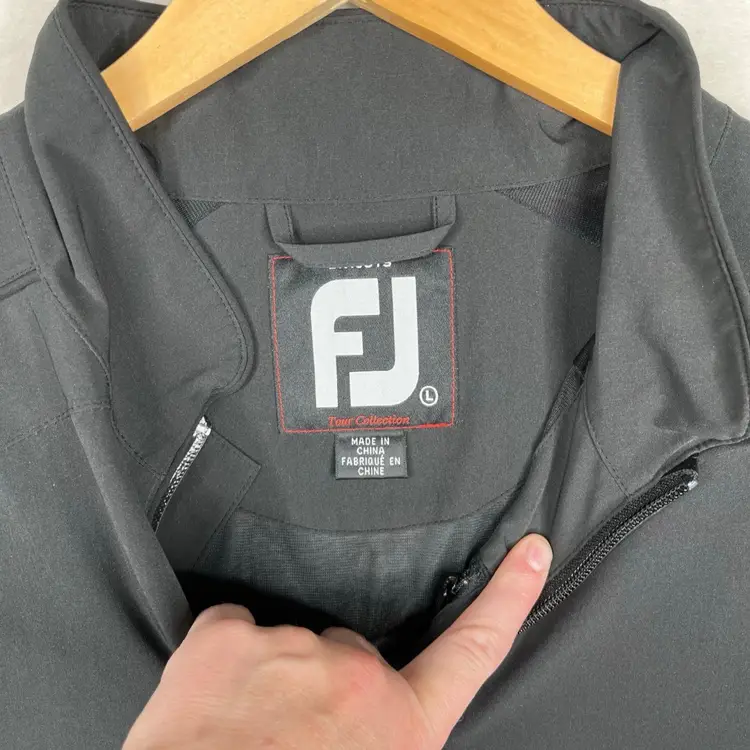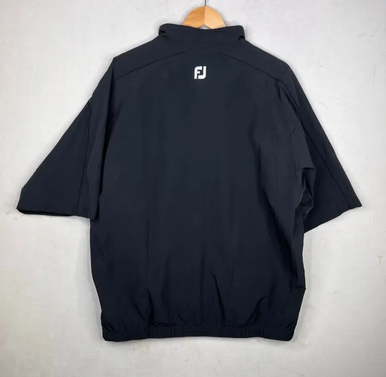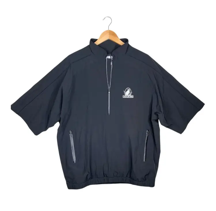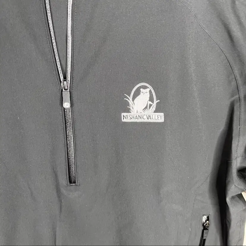 FootJoy DryJoys Tour Collection 1/2 Zip Windbreaker Rain Jacket – Men’s Large Black with Logo Stay dry and focused on the course with this FootJoy DryJoys Tour Collection 1/2 zip windbreaker. Designed for performance in wet conditions, this black men’s rain jacket features a water-resistant shell, lightweight construction, and breathable fabric to keep you comfortable through every swing. The half-zip front allows for easy layering, while the Neshanic Valley logo adds a touch of pro-level style. Ideal for golf, travel, or any outdoor activity where staying dry matters.