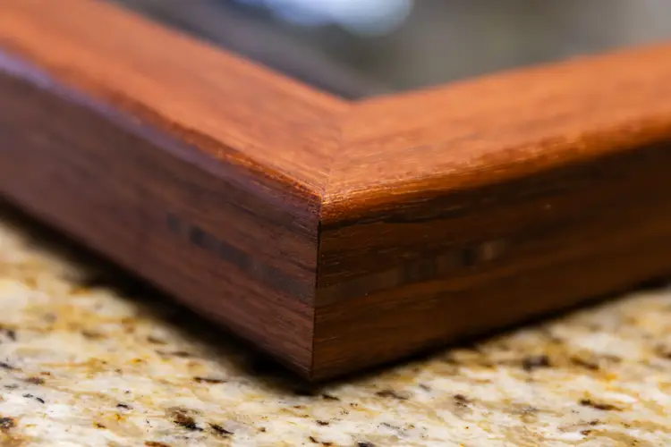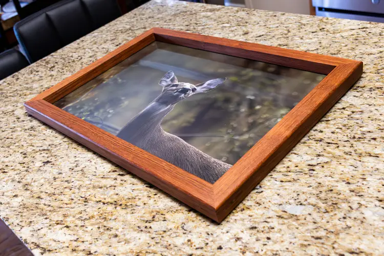 Every print is carefully presented in a handcrafted hardwood frame made by the artist. The frames are built from solid Brazilian Cherry (Jatoba) using only structural tenons. There is no particle board like a standard framing shop. There are no fasteners, brad nails, or V nails.