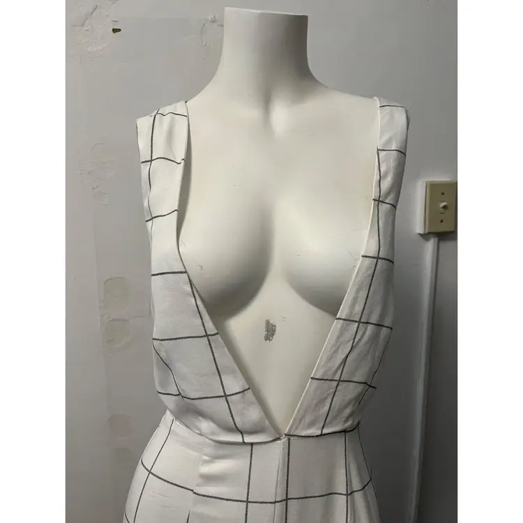 Brand: FOREVER 21 Size Type: Regular Pattern: Striped Department: Women Type: One-Piece Neckline: V-Neck Size: S Color: Ivory Style: Jumpsuit Features: Lined