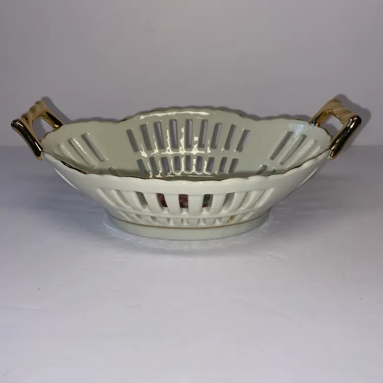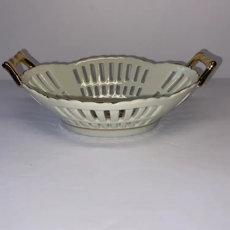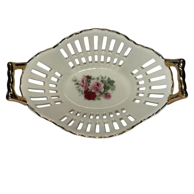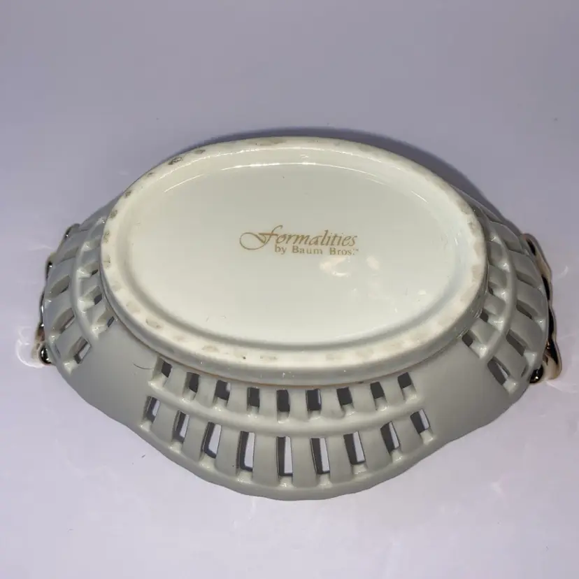 The formalities by Baum Bros Small China Rose Bowl with slats is a beautifully crafted porcelain bowl in a delicate pink color. Made in China, this bowl is perfect for serving or displaying small snacks or fruits. Its elegant design and fine craftsmanship make it a lovely addition to any tabletop setting or as a decorative piece in a home.