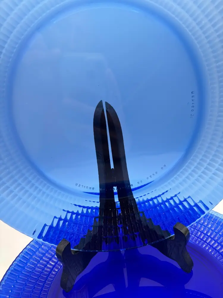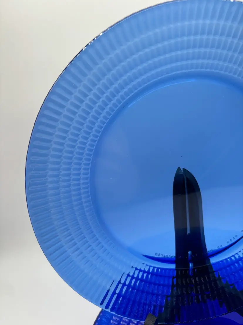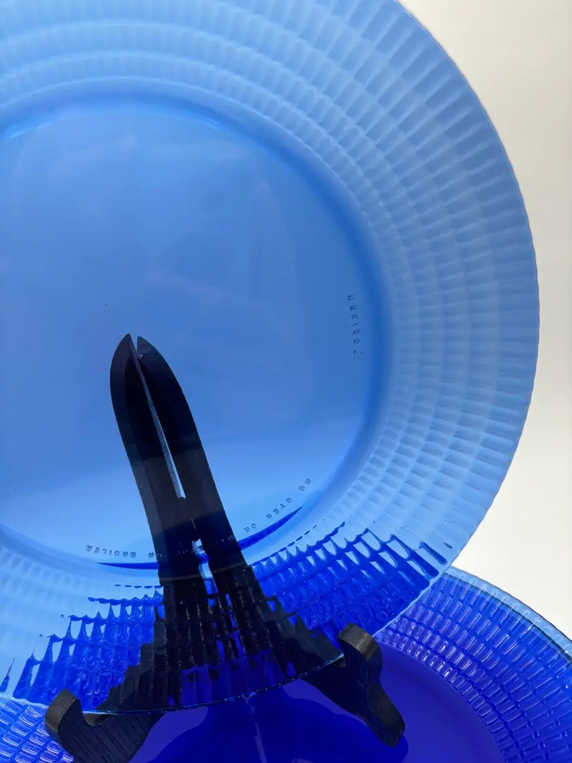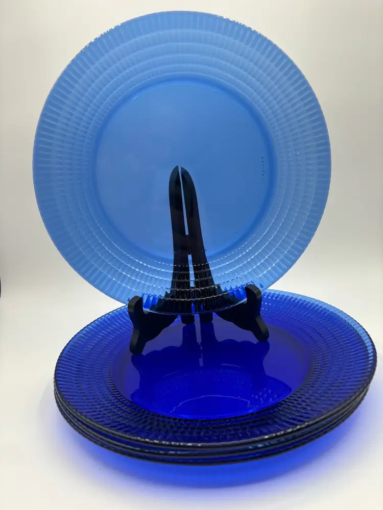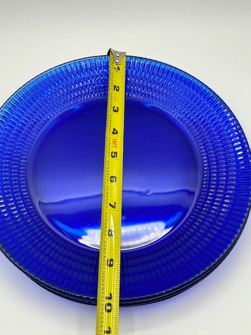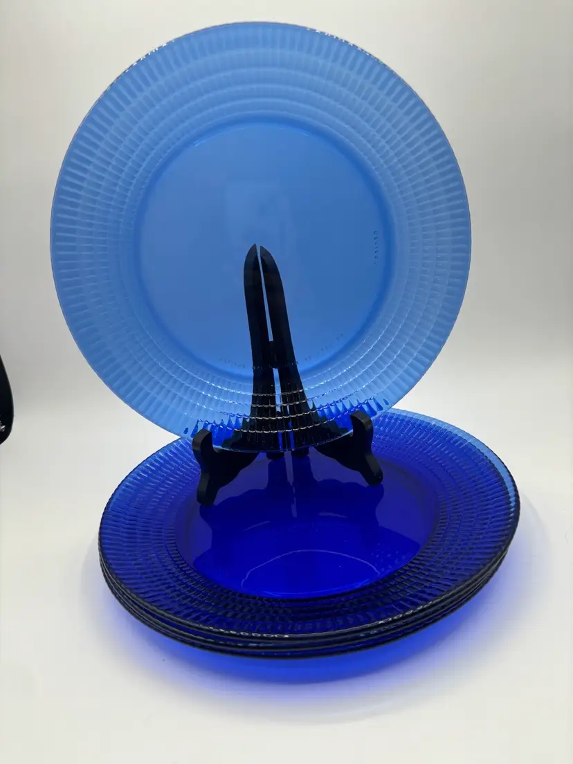 Forte Crisa (FCG3) Cobalt Blue Glass 4 Dinner Plates Textured Rim Mexico in great condition