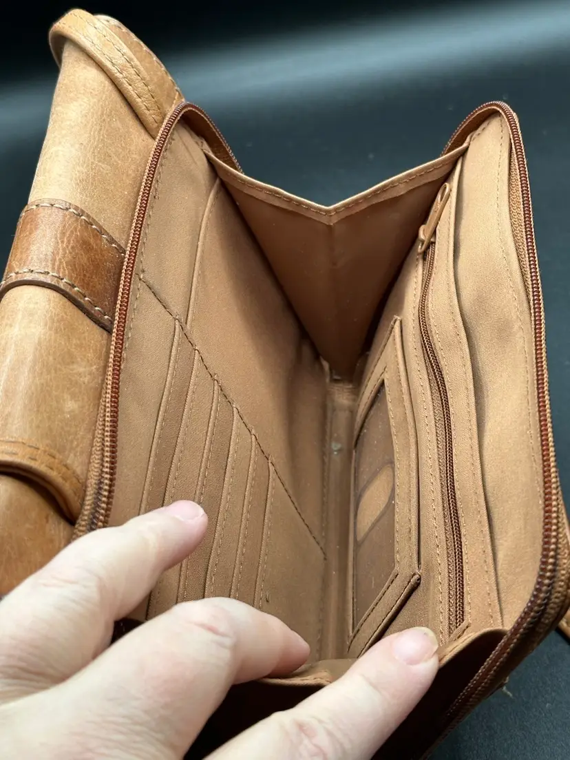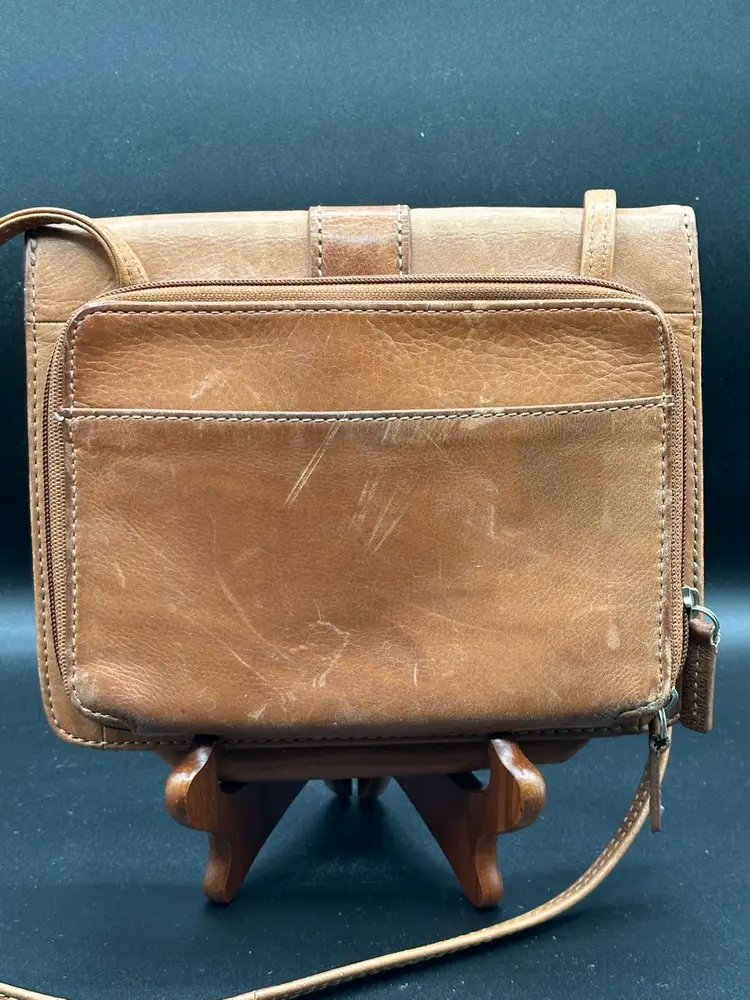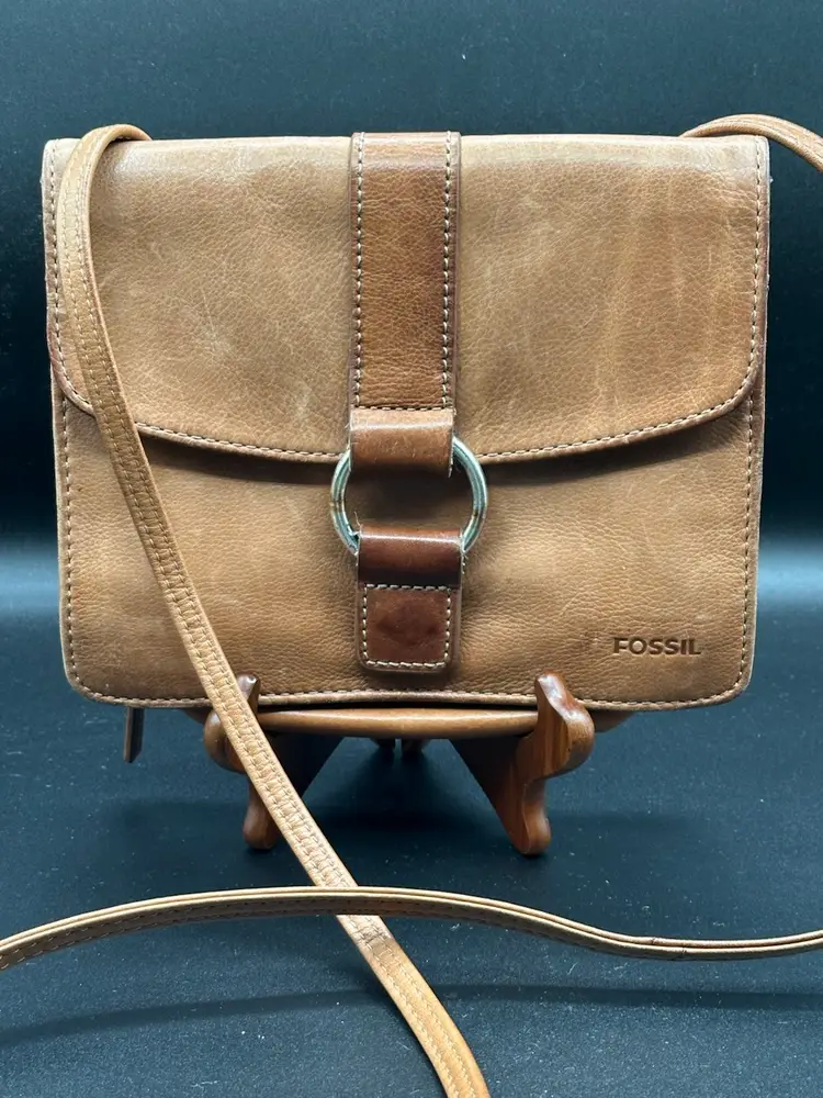 This Fossil leather crossbody purse with an attached wallet organizer is perfect for casual occasions. The bag is medium-sized with a solid pattern and features a brown crossbody strap for easy carrying. The antique brass tone hardware and brown exterior color add a classic touch to the design. The bag has a zip and magnetic closure, ensuring that your belongings stay safe and secure.