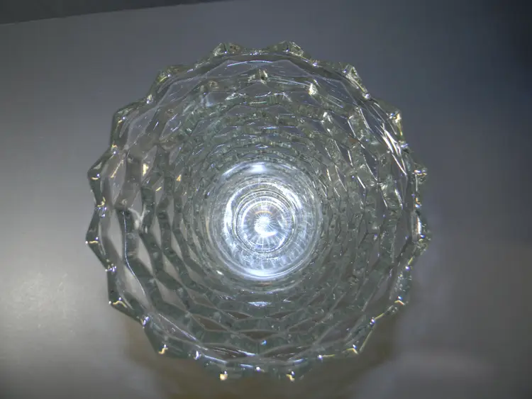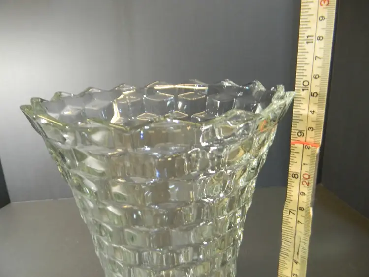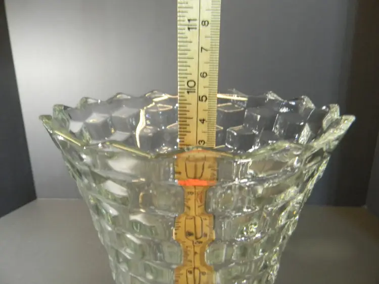 Vtg. Flared Vase Fostoria American/Indiana Glass Whitehall Style Distinctive cubed, geometric pattern Scalloped, flared rim top Pressed Glass This is a beautiful piece on your table. Ready for a large bouquet of flowers. Used at any gatherings or occasions Measurements are 10" Tall and approx. 5 1/2 inches wide No chips or cracks used condition No Stains No Box or Paperwork **See all photos before purchasing Measurements are in the photos