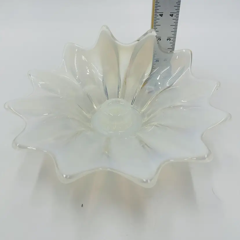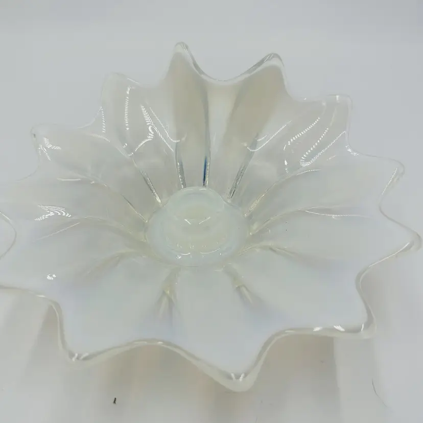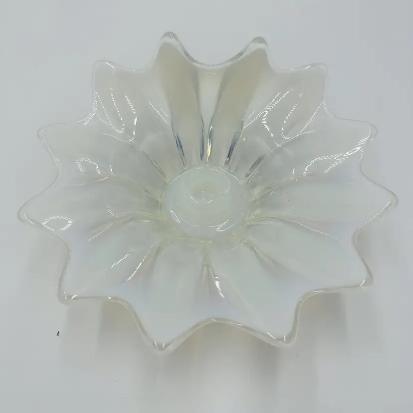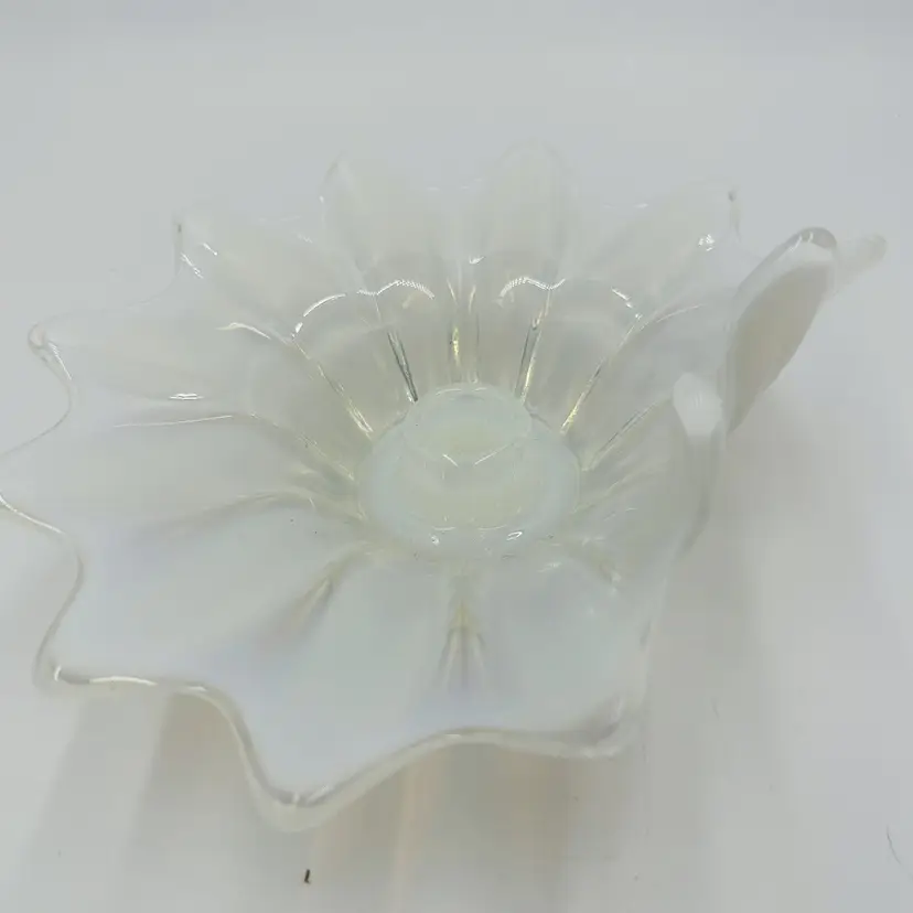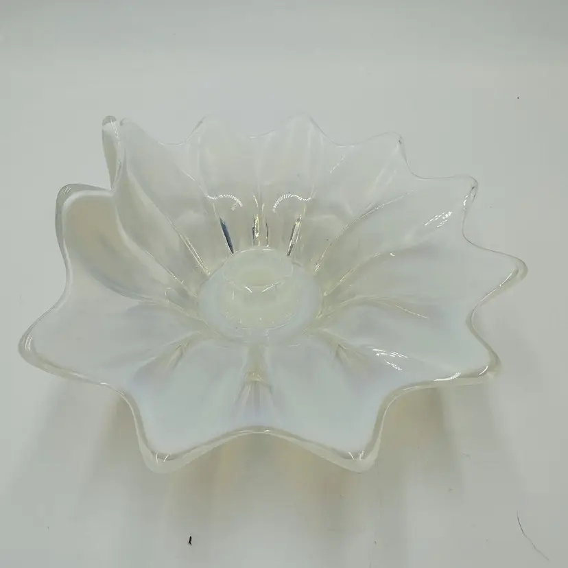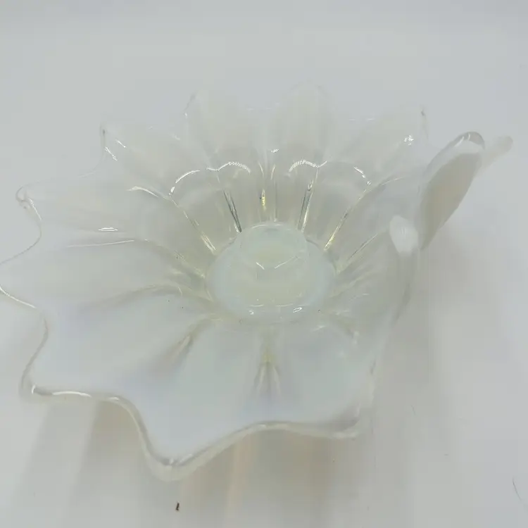 Item Length: 8 in Item Height: 3.5 in Subject: Abstract Art Vintage: Yes Suitable For: Church Candle Country/Region of Manufacture: United States Origin: Americas Material: Glass Finish: Glossy Production Style: Opalescent Glass Brand: Fostoria Style: American Empire Color: White Signed: No Original/Licensed Reproduction: Original Room: Any Room Theme: Abstract Type: Candle Holder