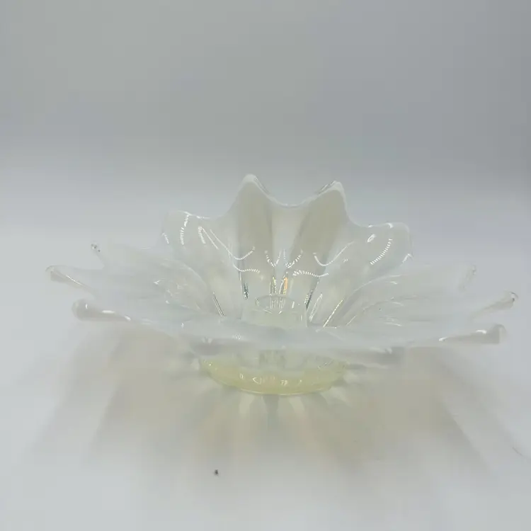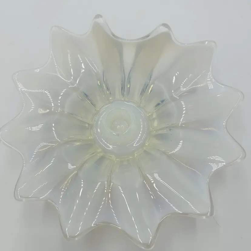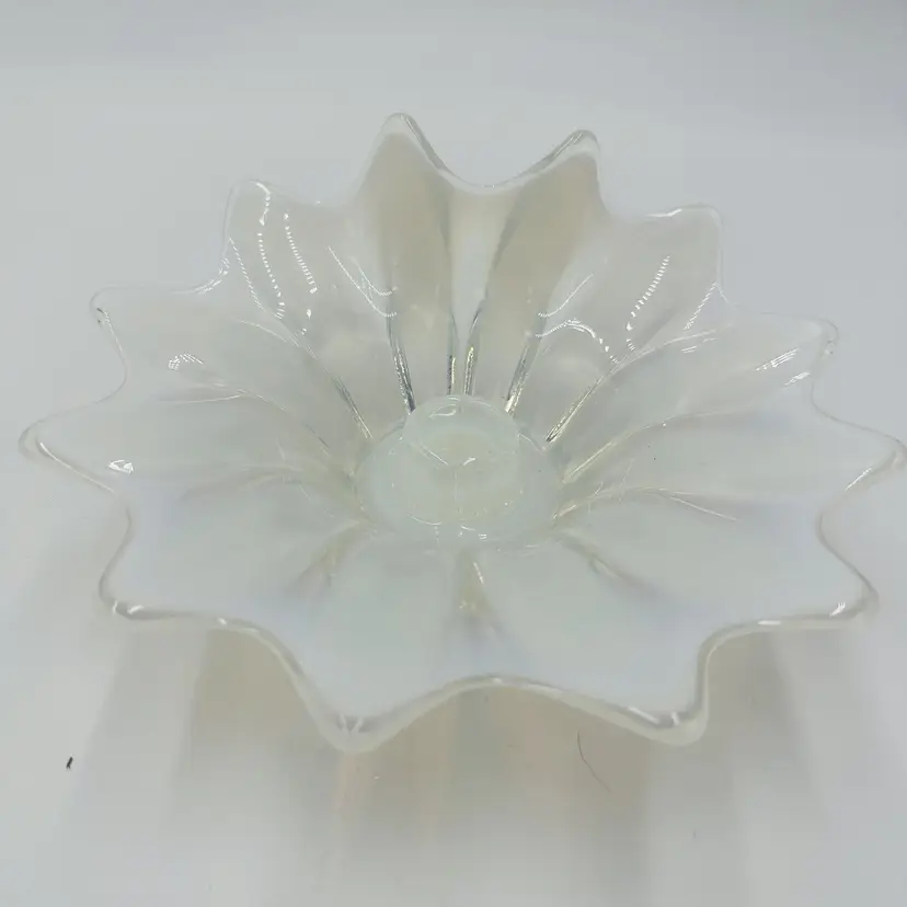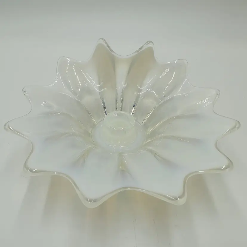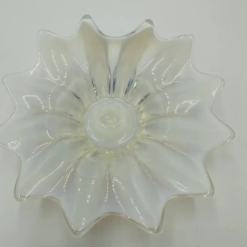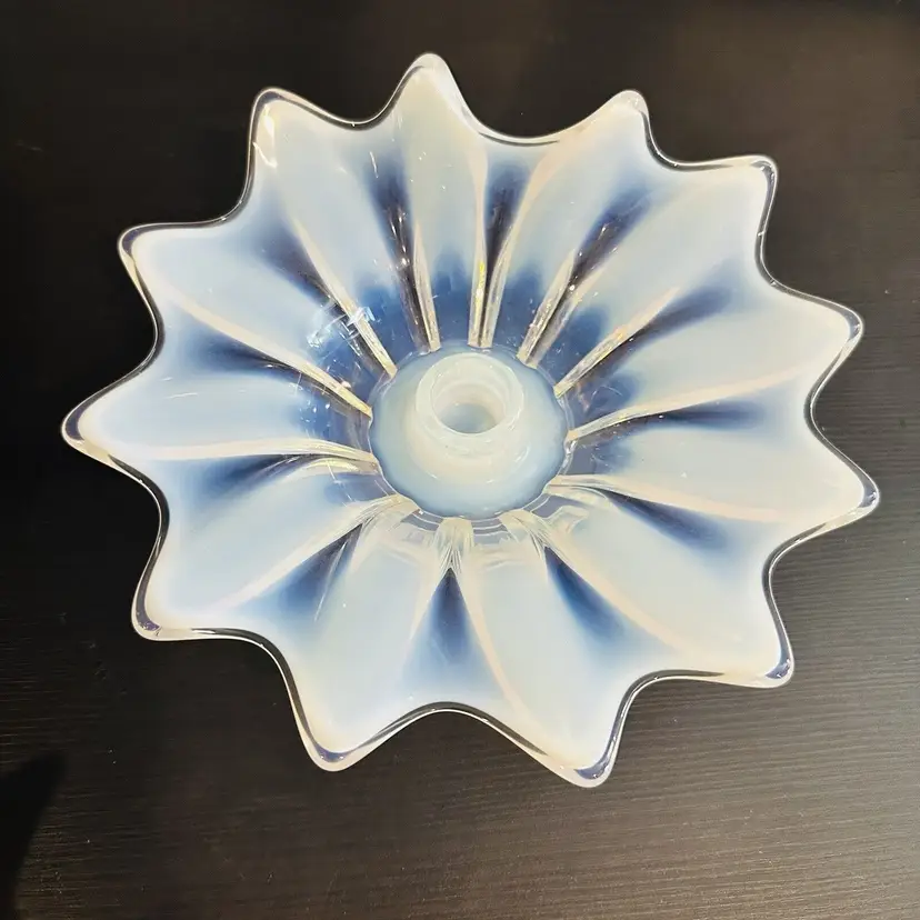 Item Length: 8 in Item Height: 3.5 in Subject: Abstract Art Vintage: Yes Suitable For: Church Candle Country/Region of Manufacture: United States Origin: Americas Material: Glass Finish: Glossy Production Style: Opalescent Glass Brand: Fostoria Style: American Empire Color: White Signed: No Original/Licensed Reproduction: Original Room: Any Room Theme: Abstract Type: Candle Holder