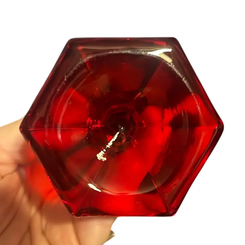 This particular ruby red coin glass vase is a representative example of Fostoria's popular mid-century designs. The "coin" motif, often featuring a Liberty Head nickel design, was a signature element that appealed to collectors. The vibrant ruby color, achieved through the addition of cadmium, is highly sought after, and these vases were commonly used for displaying single blooms or small bouquets.