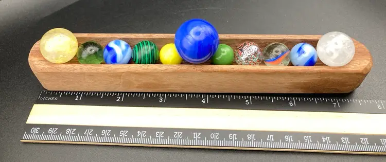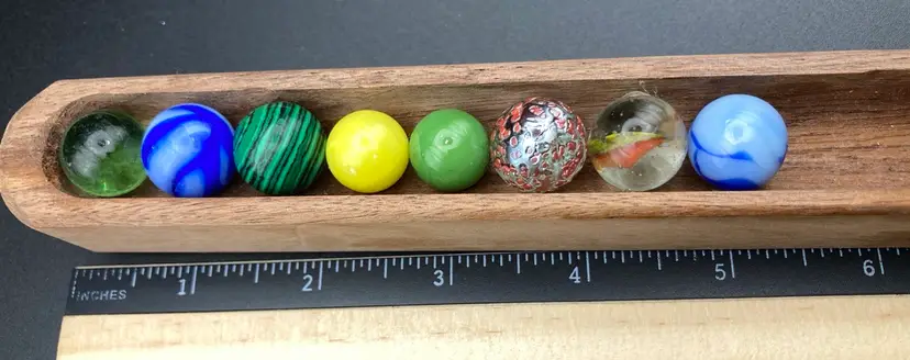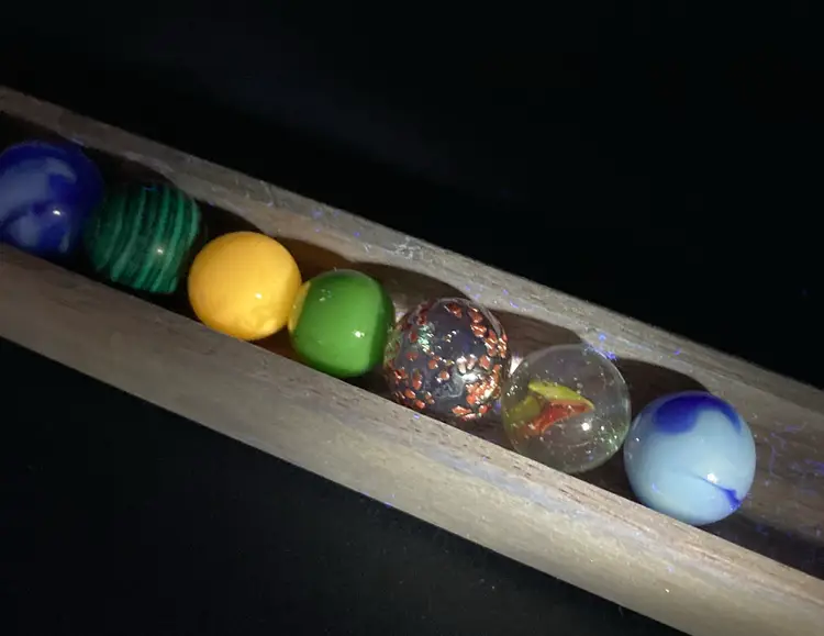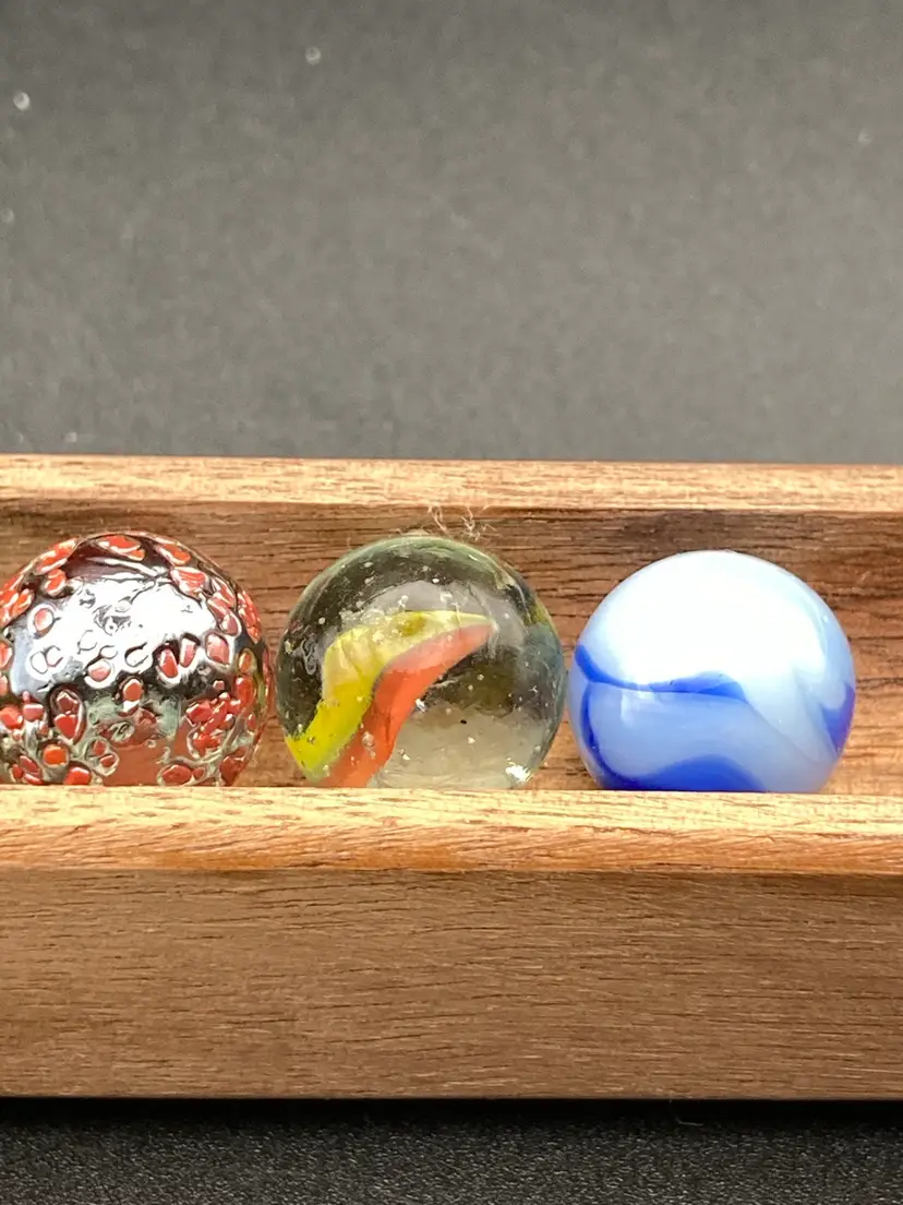 Found My Marbles Vignette ๐๐๐ 8 Marbles, 3 Shooter Size And Display Stand! Stand Measures 7 3/4โ Long x 1โ Wide! Some UV Reactive! ๐๐๐ NEW to District? Enter code Michel42 into your wallet prior to your first ever purchase and save $5 off any $10 or more! Give me a Follow and I WILL Follow you back!