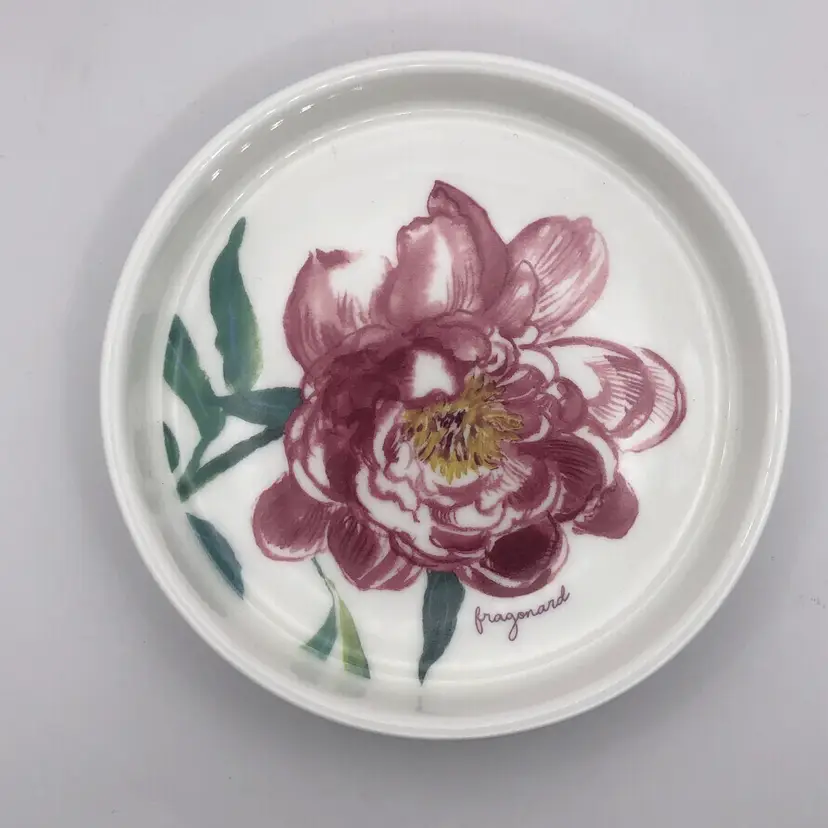 Perfect for any home! You are purchasing a gently used bathroom set of toothbrush cup and round soap dish from the famed Fragonard Parfumeur with a lovely rose/floral pattern. The soap dish measures 4.5" in diameter and cup measures 4" tall and 3 3/4" in diameter.