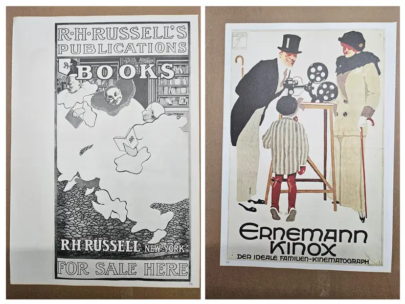 Pages from: 100 years of posters (Bevis Hillier) 1972. Picture depicts the front and back of poster. Copied on heavy weight matte paper. Works well with acrylic stand-out frames as you can turn the frame around to display the other side. Thank you for your interest!