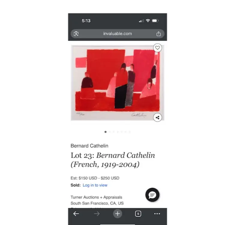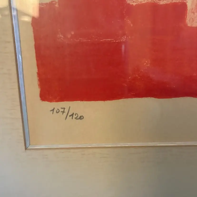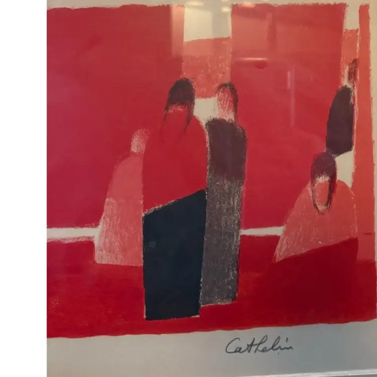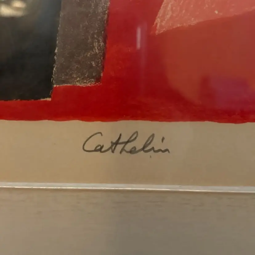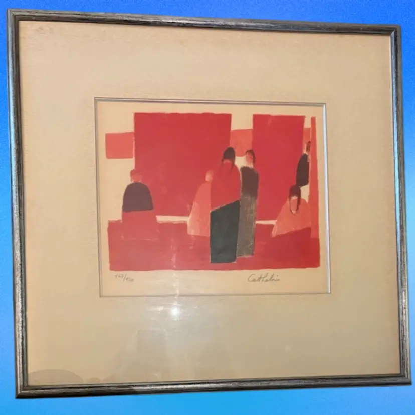 Original lithograph Title: Marche D'Otavlo Signed Bernard Cathelin Number 107/120 Frame 19x19 Artwork is 11x9.5 Similar numbered but smaller frame and slightly higher numbered lithograph appraisal for sale from February of 2021