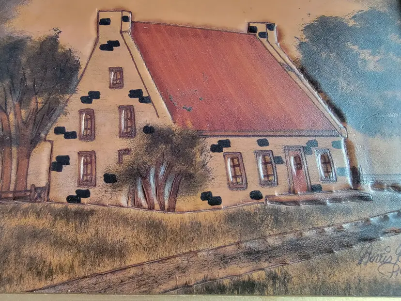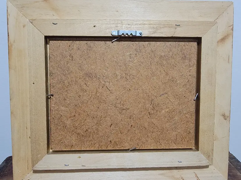 Beautiful signed artwork. The wood has an almost etched look to it. It is a very nice piece in a nice frame. It is smaller, so a shelf sitter or small wall. This would work well with many esthetics.