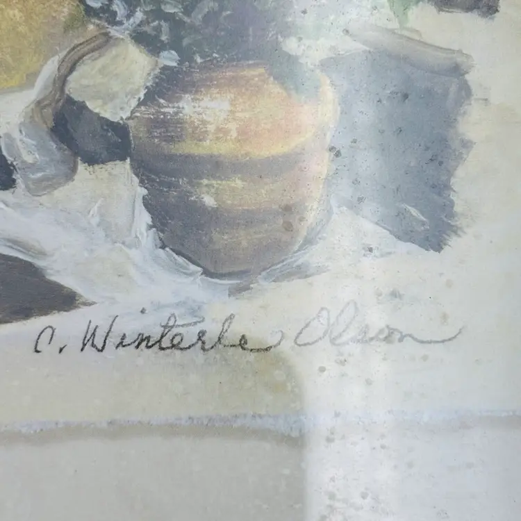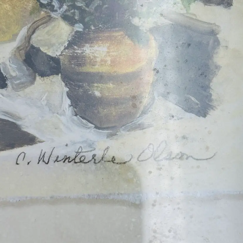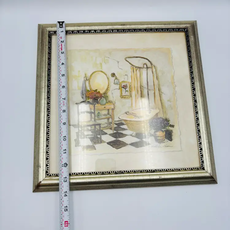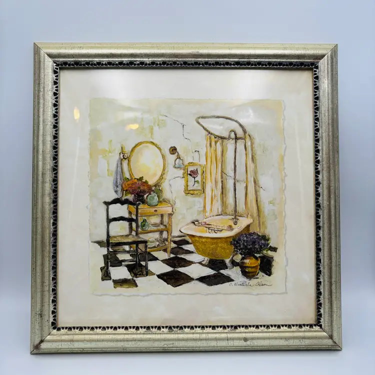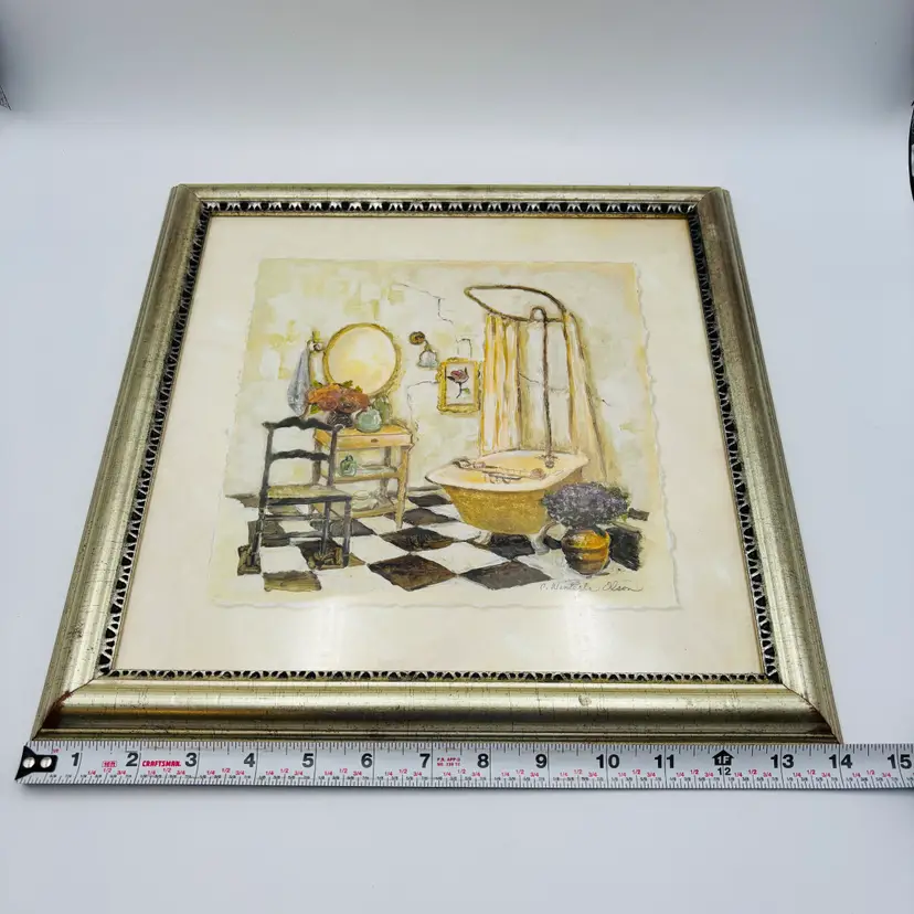 For sale is a Framed Bathroom Art Print Signed by C. Winterle Olson Large 14"x14"
