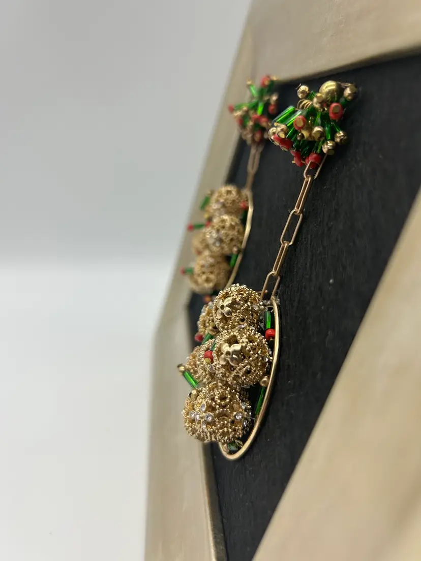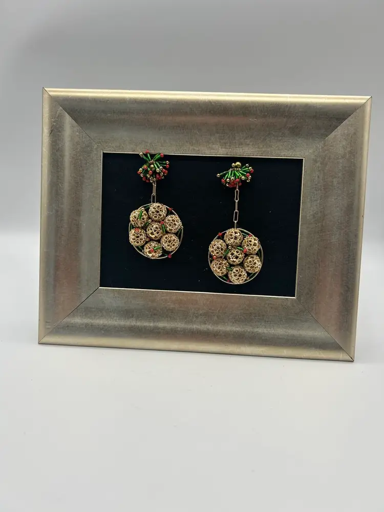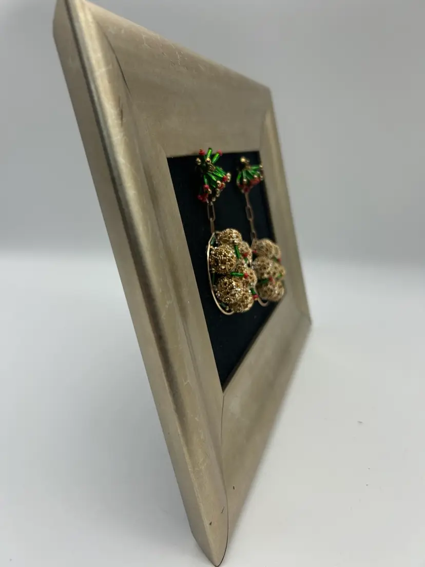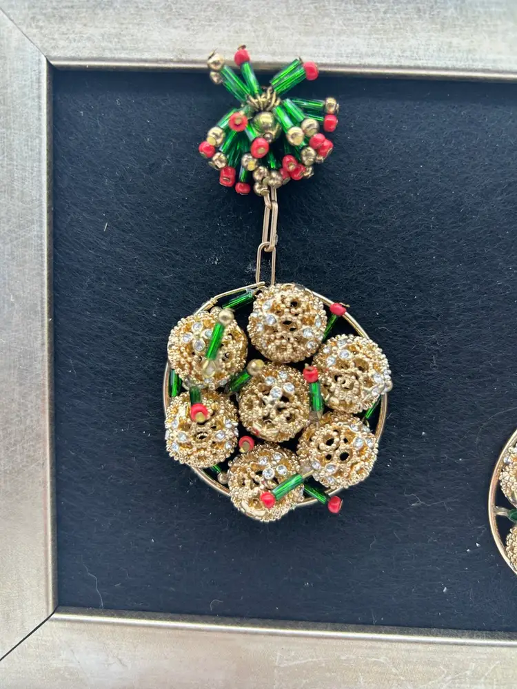 I love to repurpose items! I added felt to the glass of the frame and then took broken jewelry to create the ornaments. All ready to put out with the rest of the holiday decor. It measures approximately 10 1/2” wide by 8 1/2” tall.