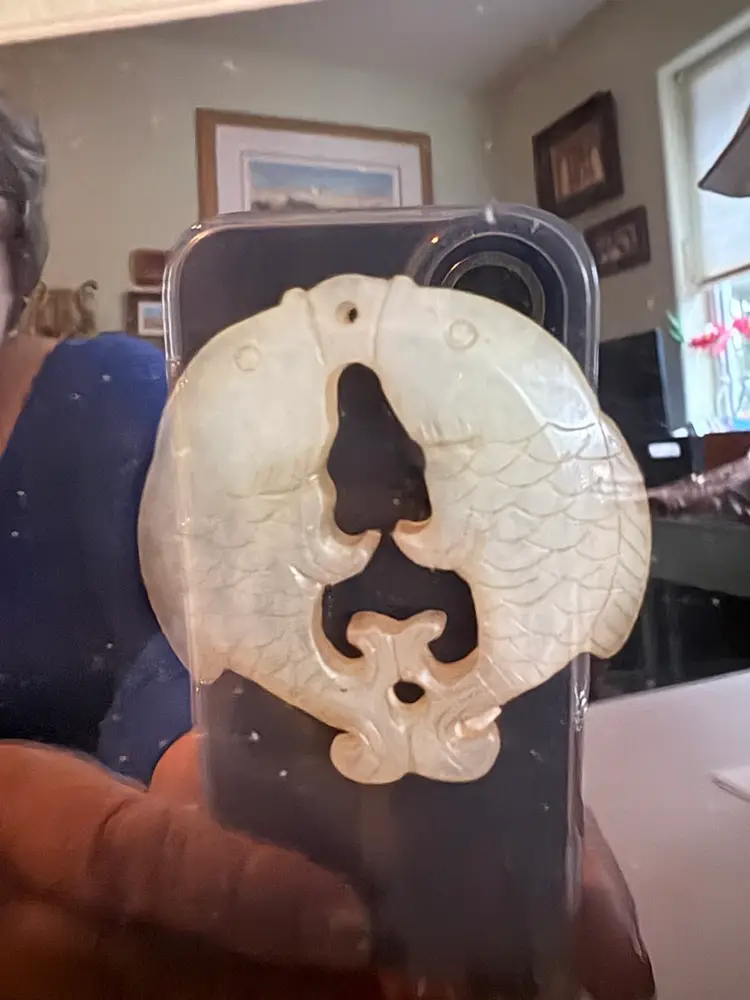 Chinese white jade carving of double fish, which is a symbol of prosperity, abundance, and connubial bliss.