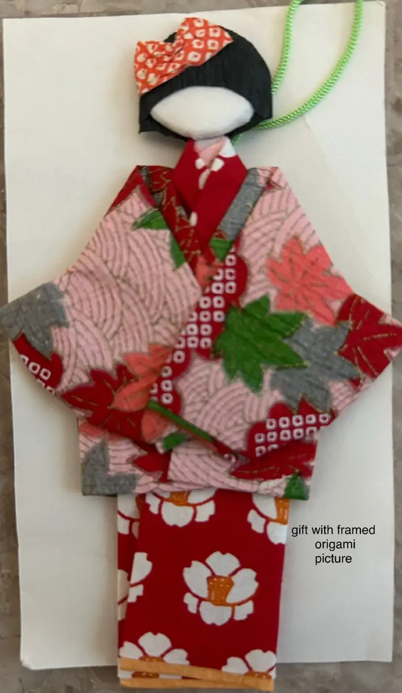This wall art depicts, Japanese doll, Purple irises and a kit. Approx 13 1/2” L x 11 1/4” w. No glass on intricate gold tone frame.
