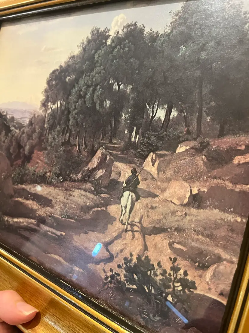 A reproduction of the oil painting “A View near Volterra” by French artist Jean-Baptiste-Camille Corot. Measures 15” x 13”