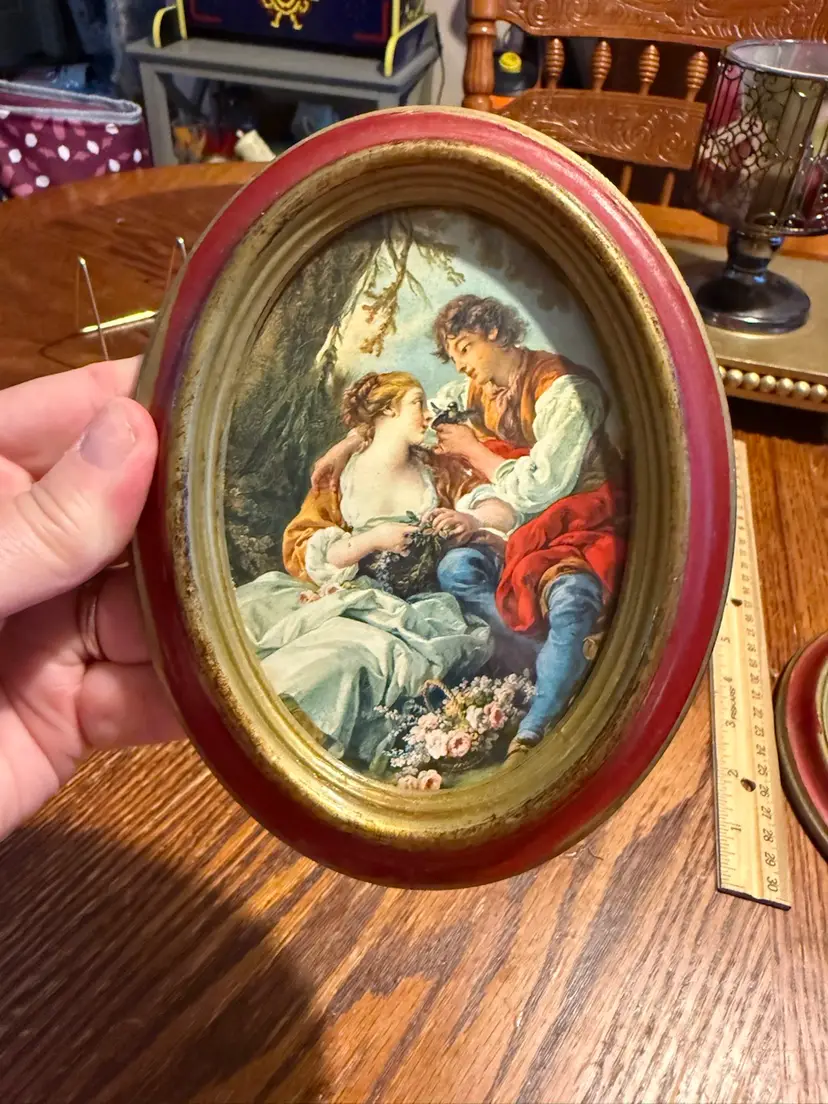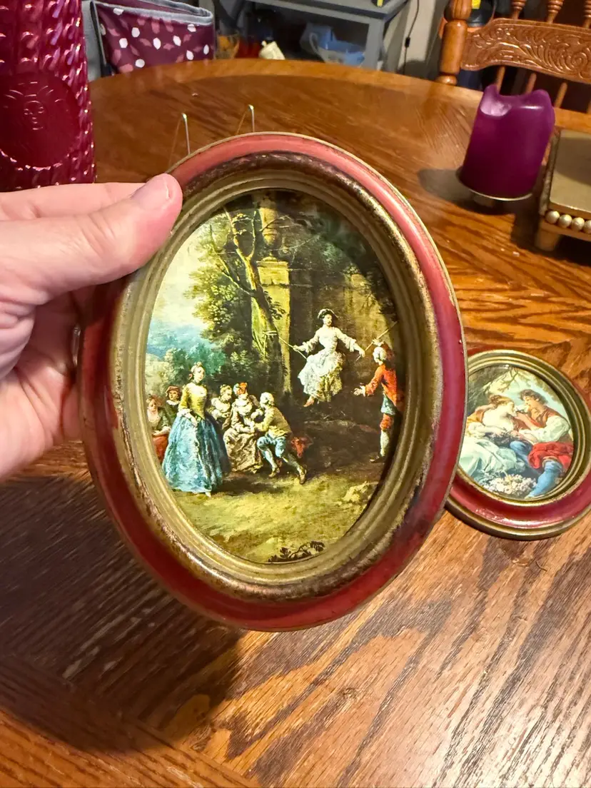 The one with the couple has glass and is in prefect condition the other one has no glass