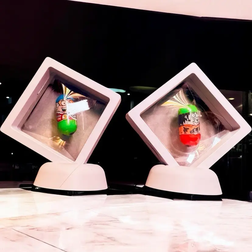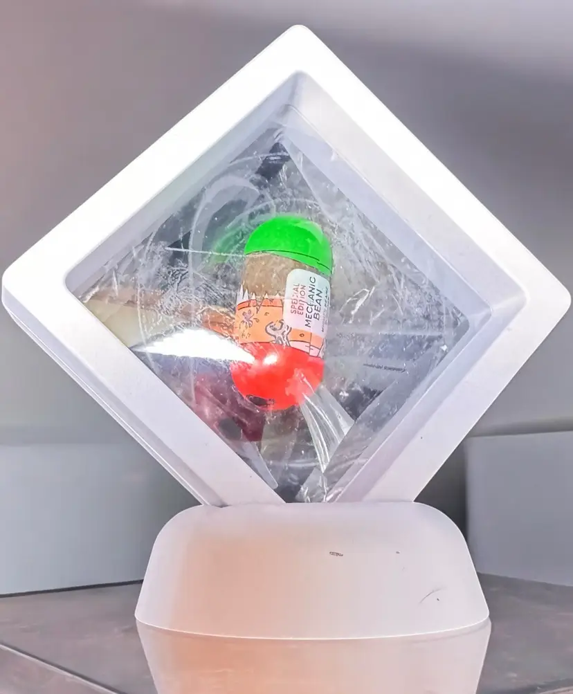 The beanz are in tiny frames with some type of plastic wrap holding them in. They will have to be double boxed like glass to keep the plastic from being punctured.