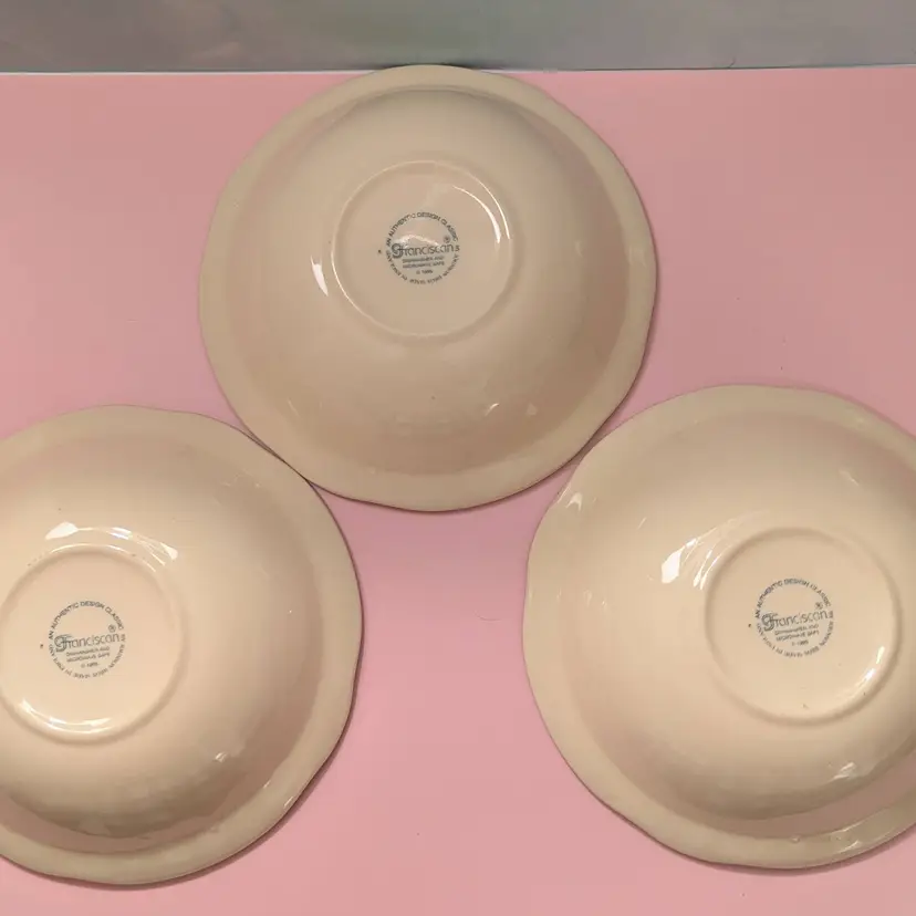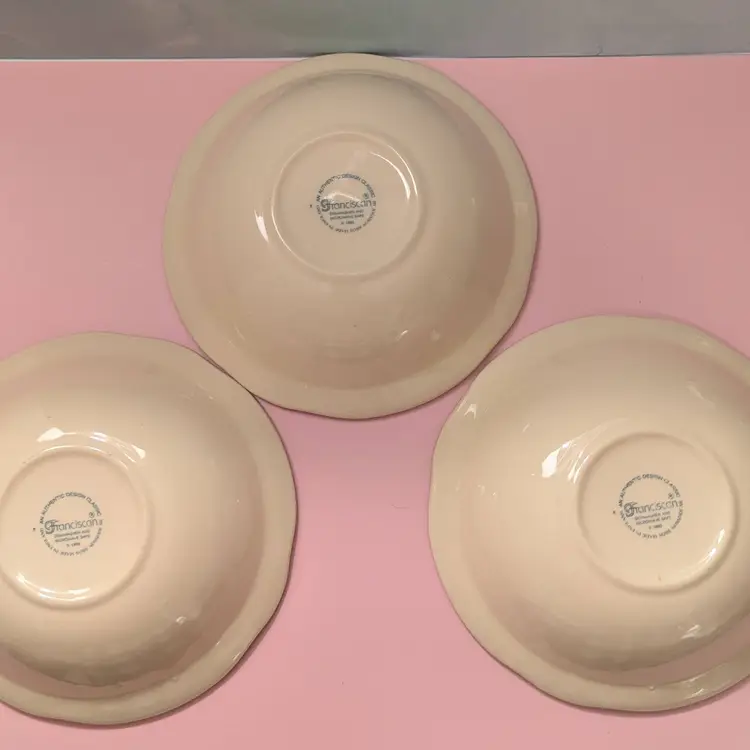 These 3 vintage cereal bowls are in good condition with no chips or cracks. Markings indicate that they were made in England, 1995, by Johnson Bros.