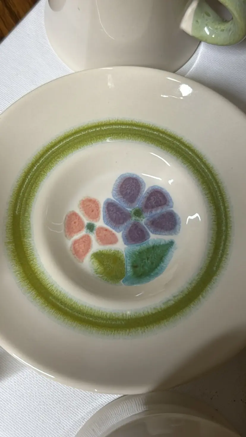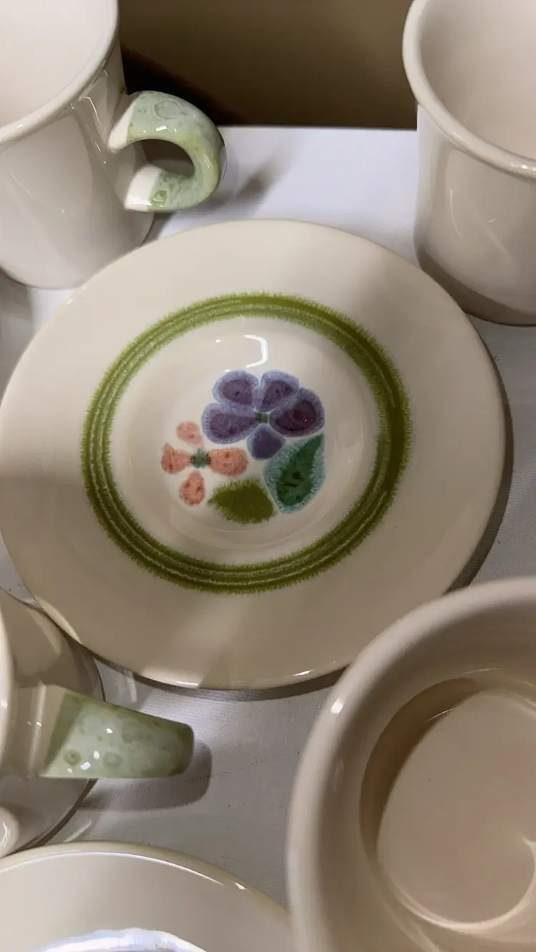 Set of 6 Cups And Saucers Vintage 1970's FLORAL Franciscan Earthenware 12 pcs total Saucers 5.75” diameter Cups 3.25” diameter 3.25” tall All in like new condition with no breaks or chips (782024g20)