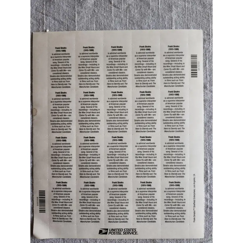 Full Sheet of Frank Sinatra Stamps US Postage Stamp 2008