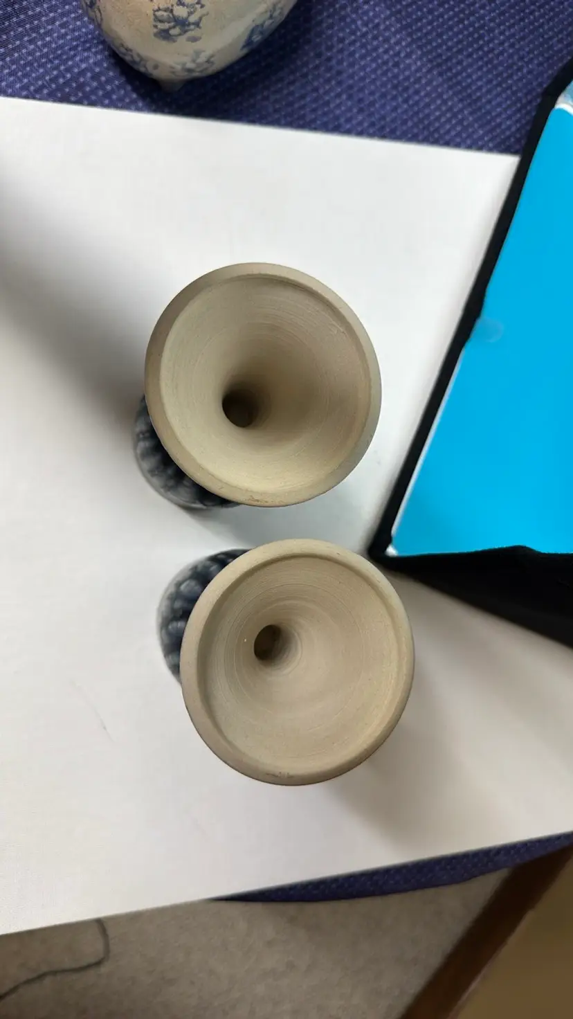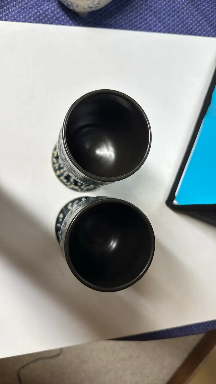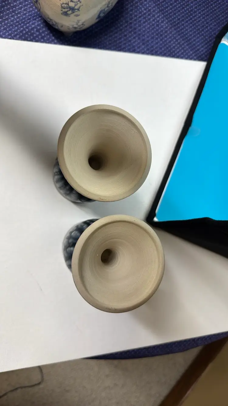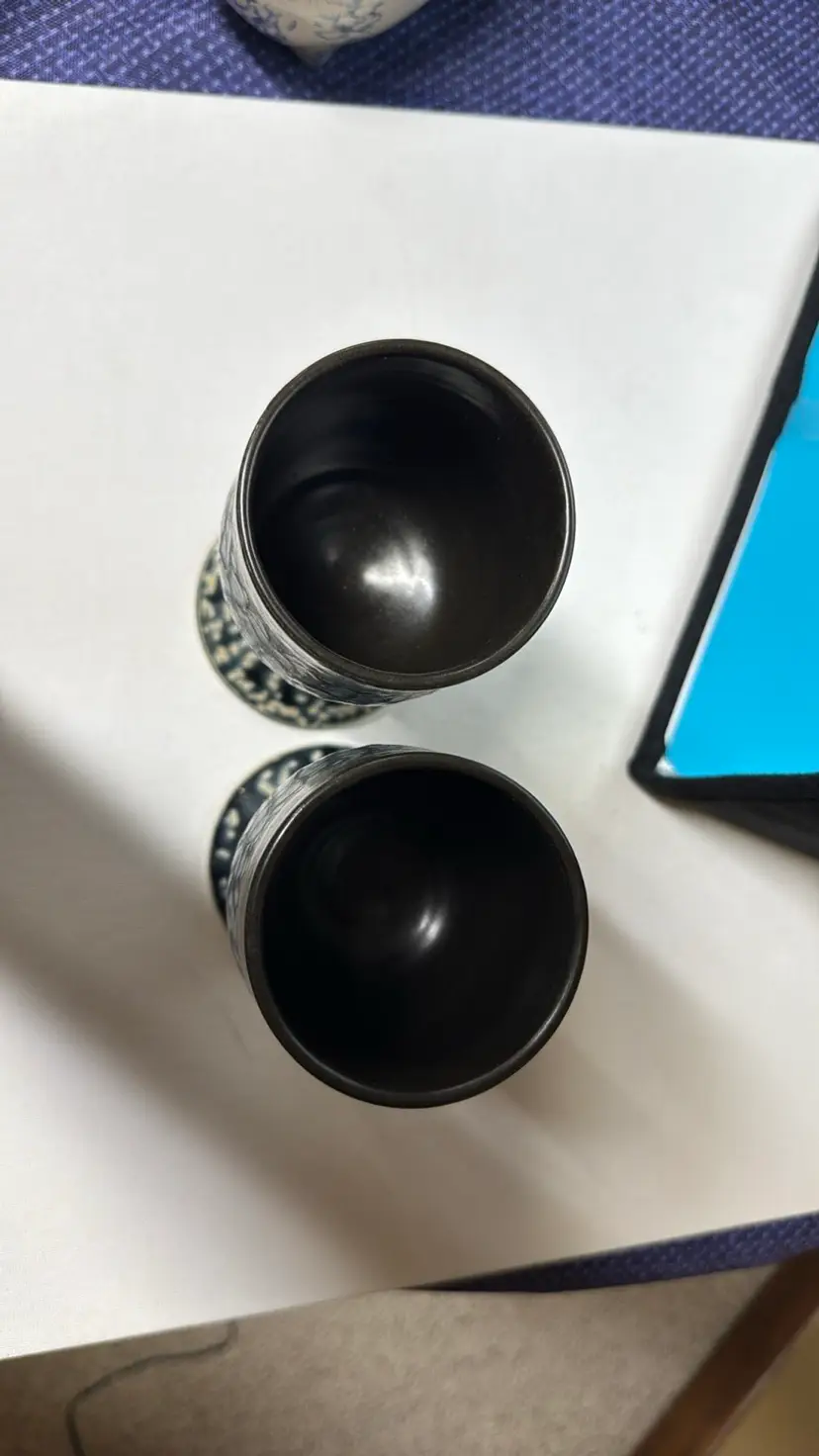 Frank Stofan "Trees" Wood Ash Blue Drip Glazed Pottery set of 2 goblets About 6” tall 2.75” diameter opening Frank Stofan is a potter From Cambridge Springs, PA This is beautiful and unique pottery it’s like new with no breaks or chips (65961725*)