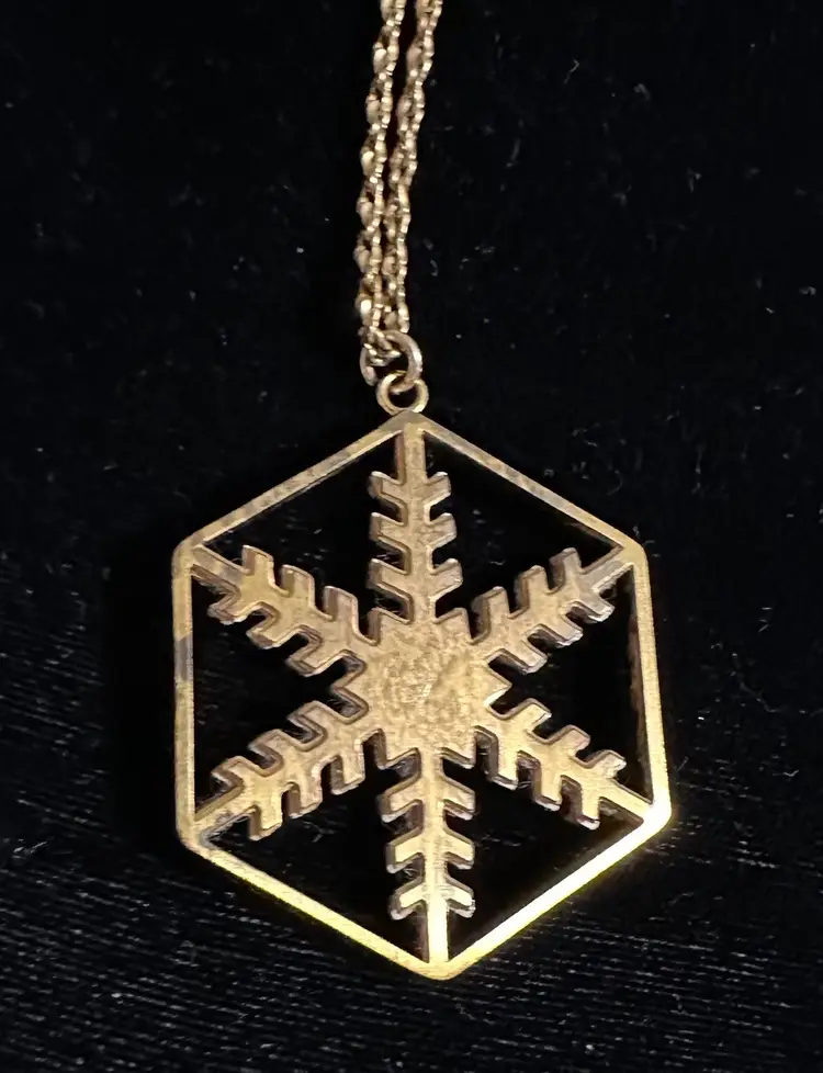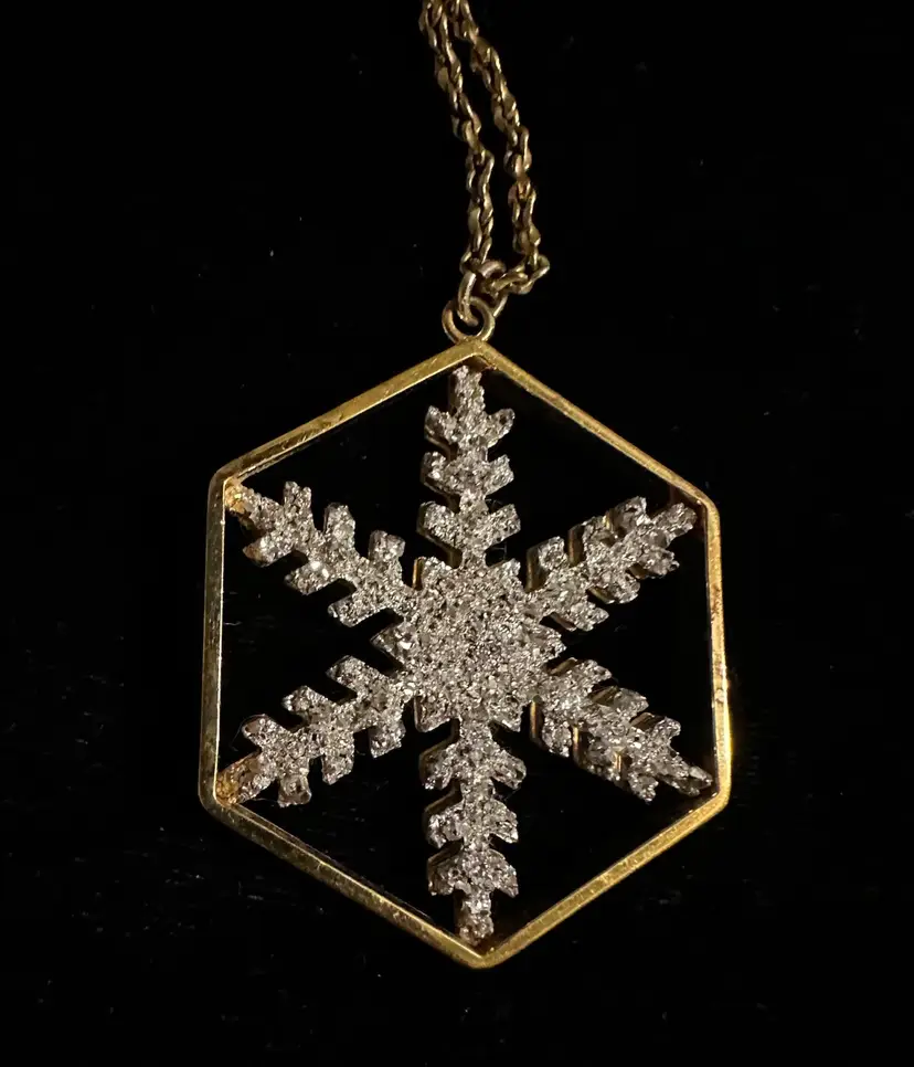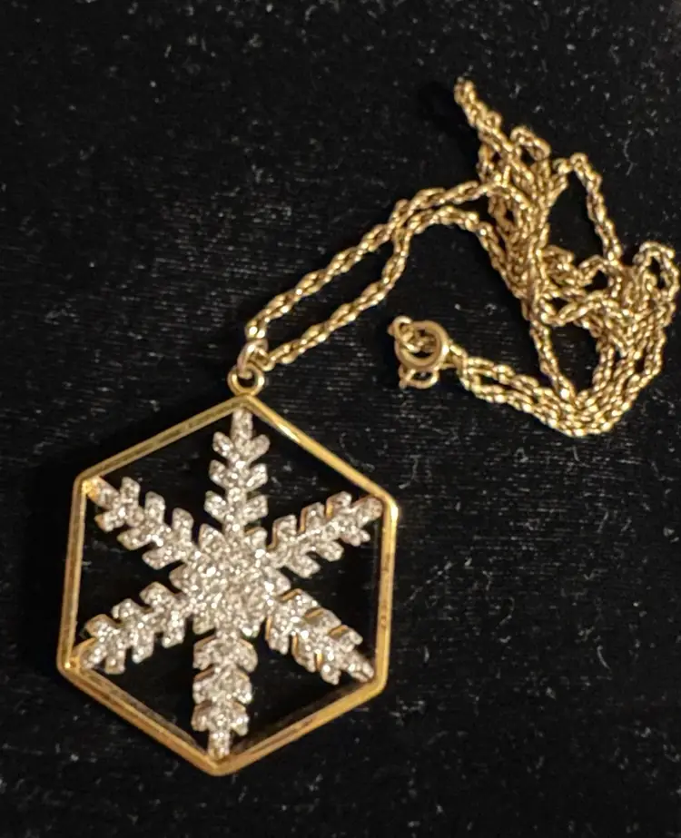 Pretty Franklin Mint snowflake pendant necklace. It is gold filled with crystal stones. The pendent is 1.25”, the chain necklace is 18”. Very good condition.