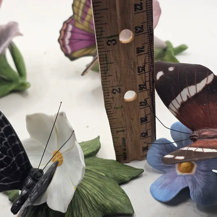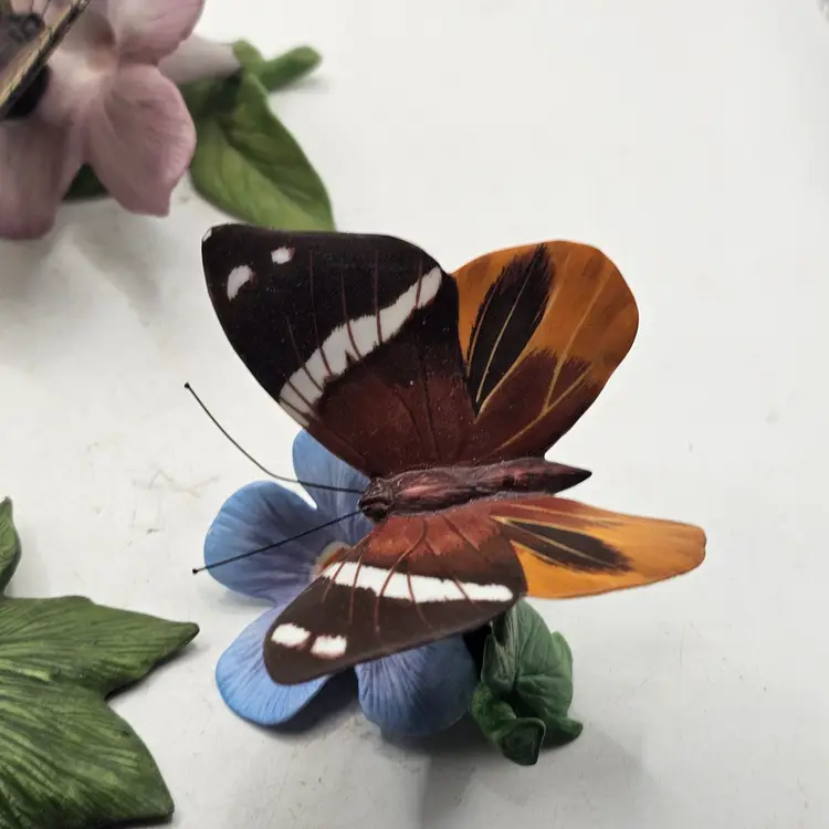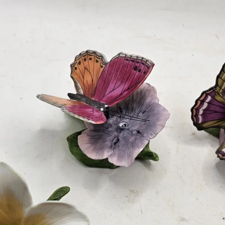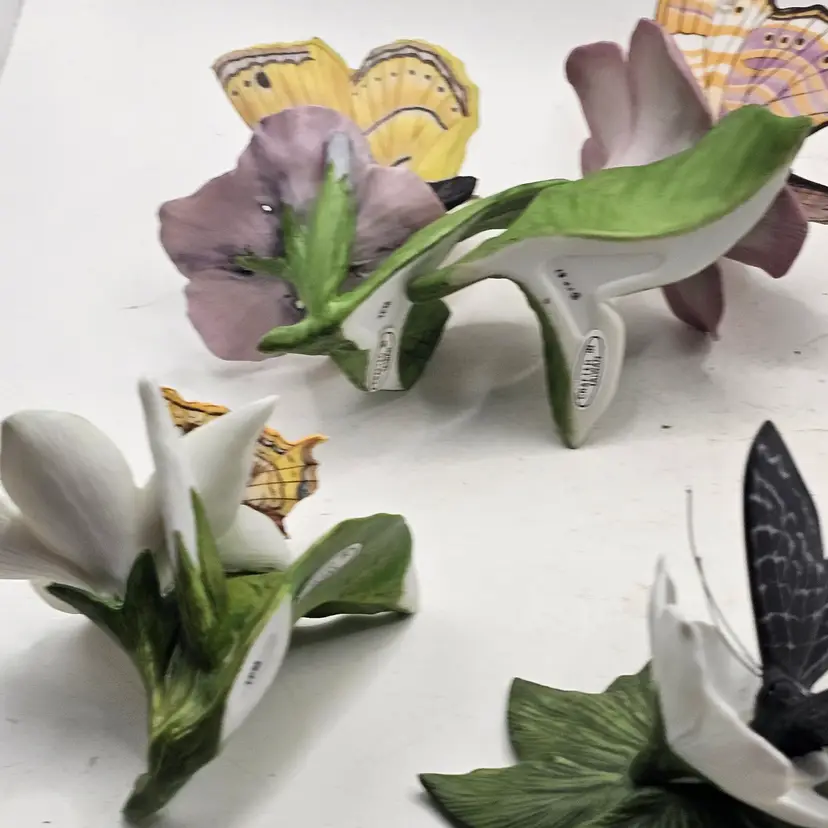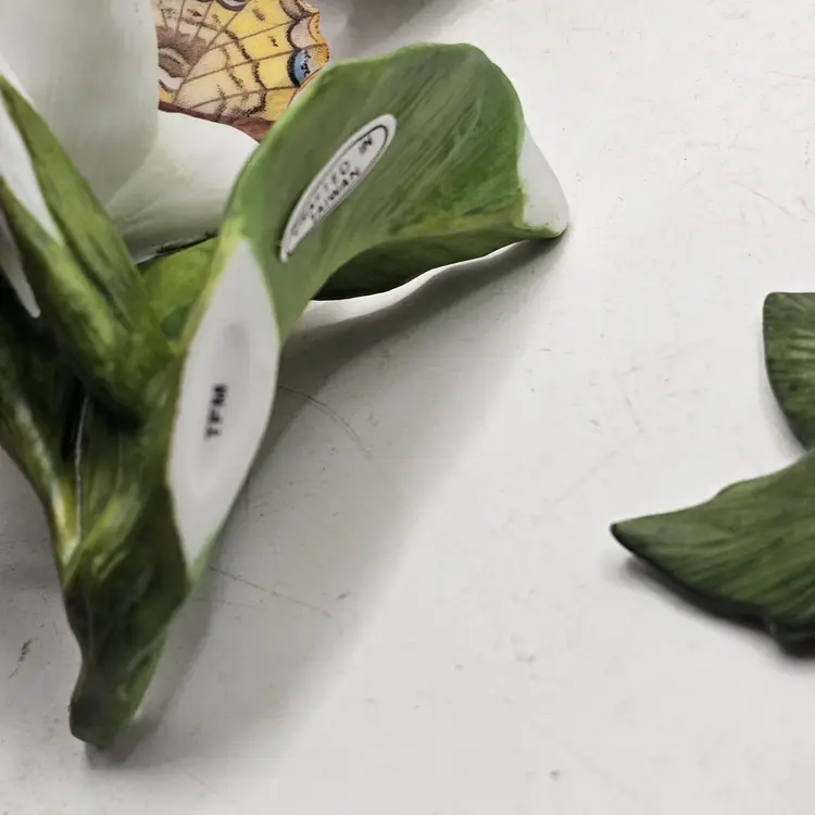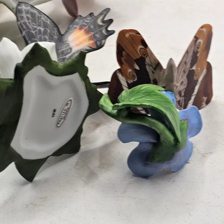 There are a couple chips. See photos for imperfections sold as is . The blue base butterfly is a little loose