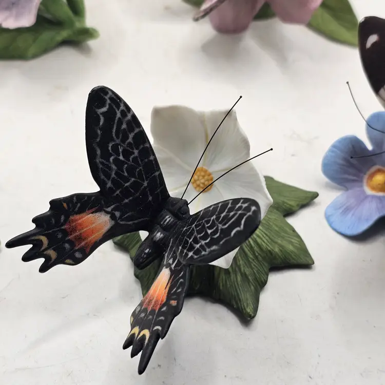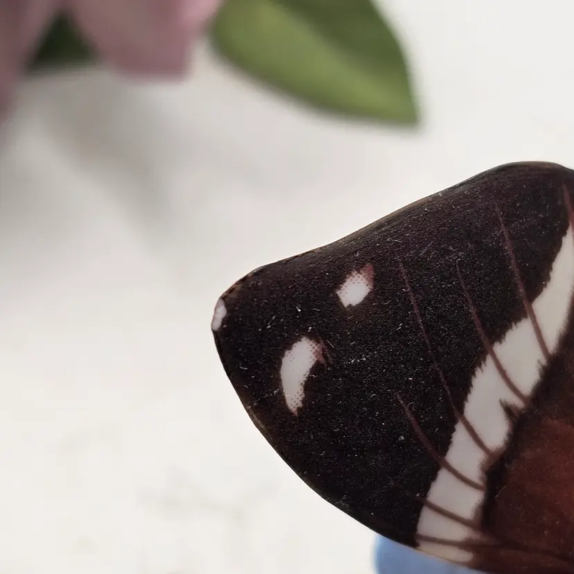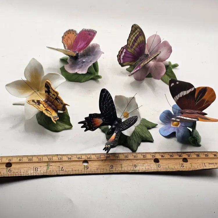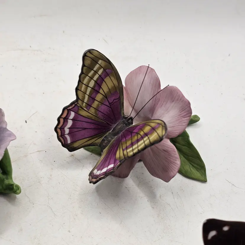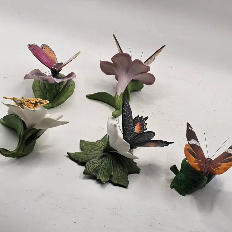 There are a couple chips. See photos for imperfections sold as is . The blue base butterfly is a little loose