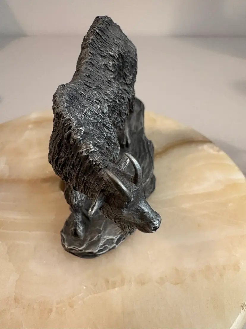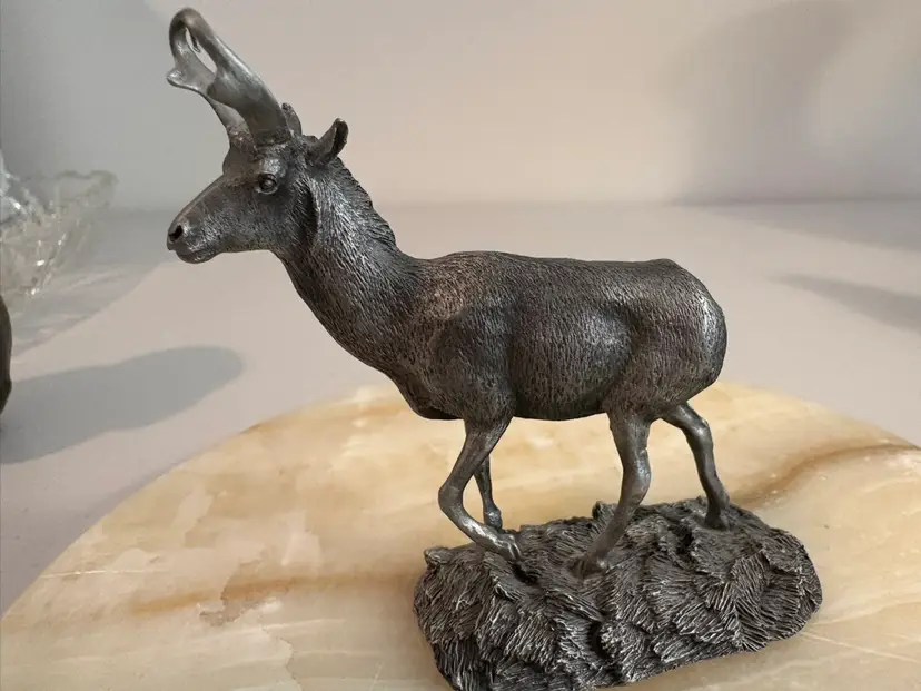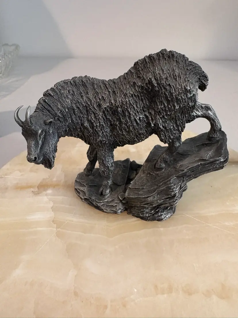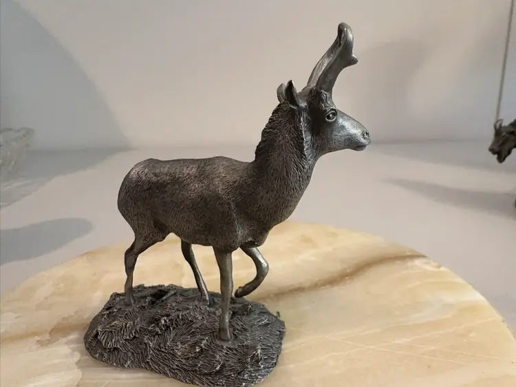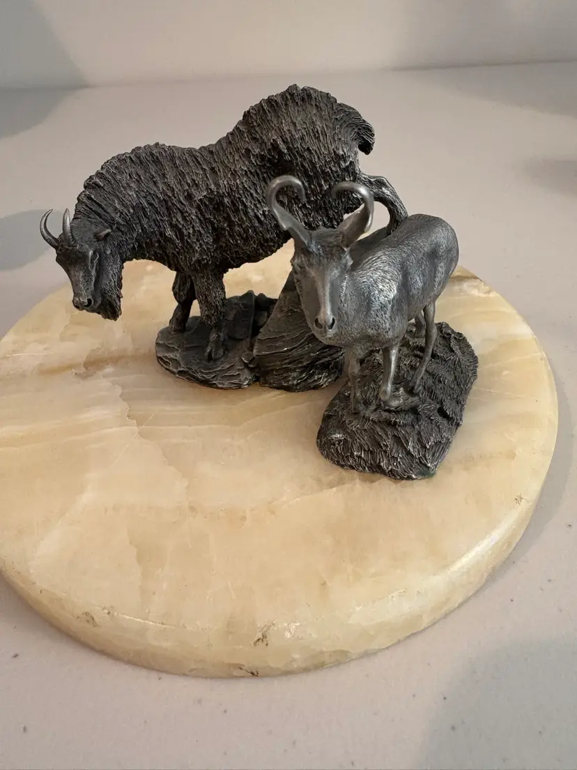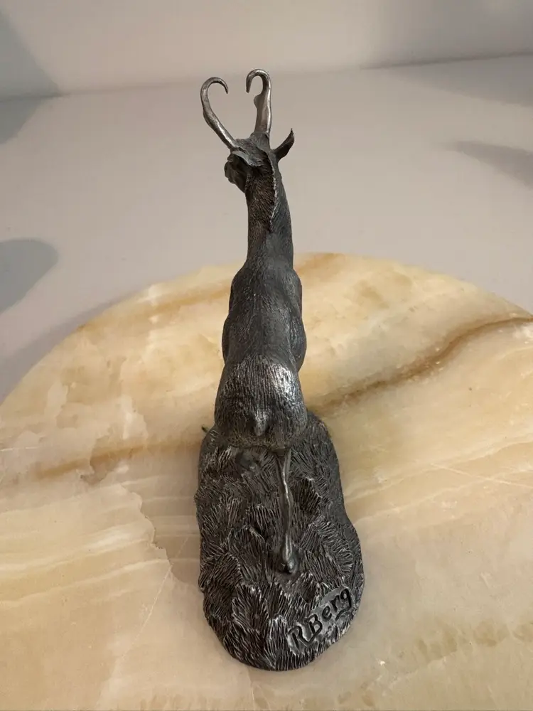 Vintage from 1976 the pewter Pronghorn Antelope and the Mountain Goat. Signed by R. Berg. Great decor for the man cave.