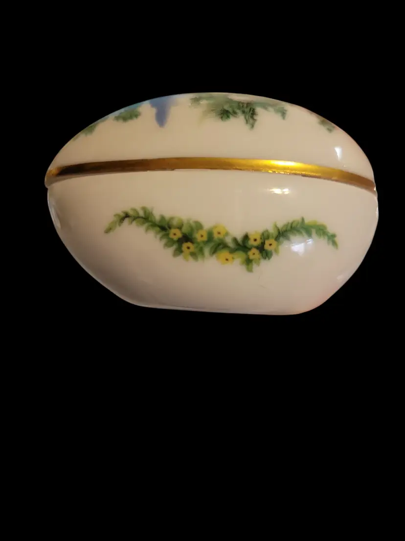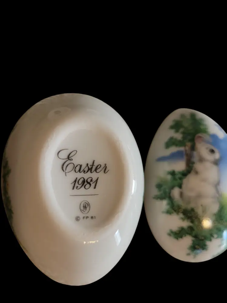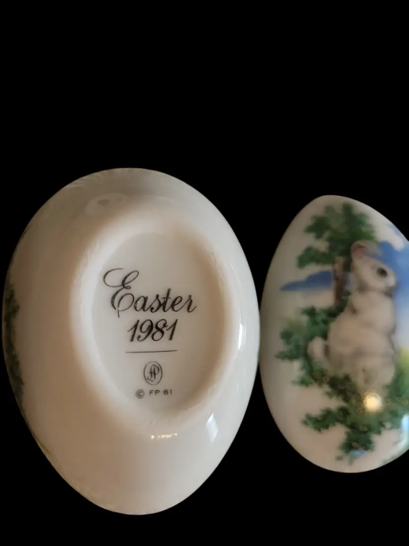Franklin porcelain Easter 1981 bunny rabbit egg shaped trinket box 2.5" l