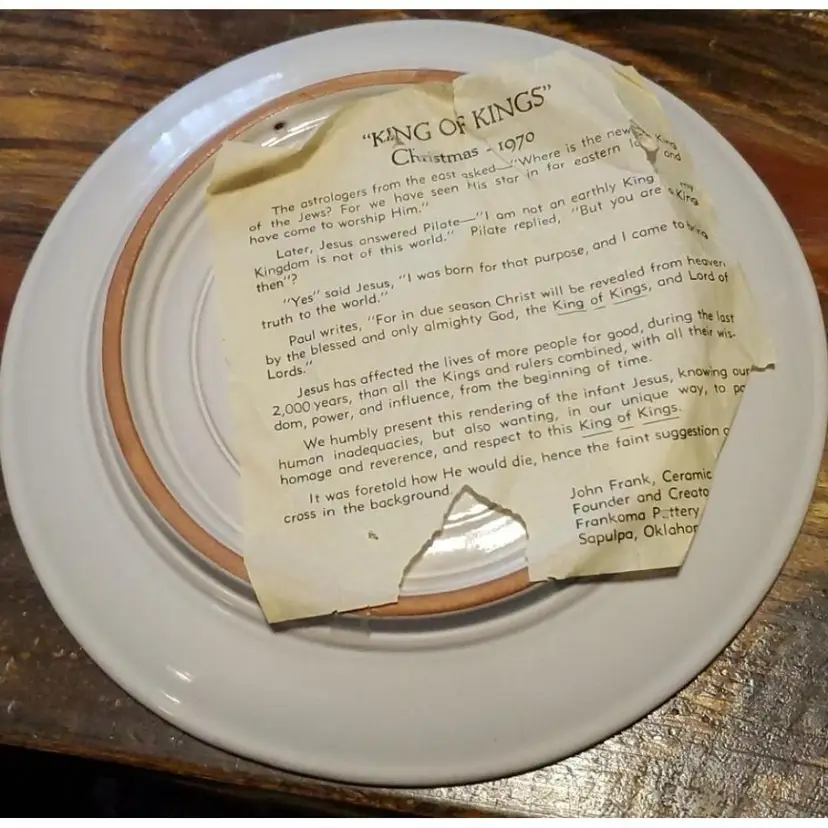 Frankoma 1970 King of Kings Christmas Plate Gently preowned No chips or cracks Signed by John Frank