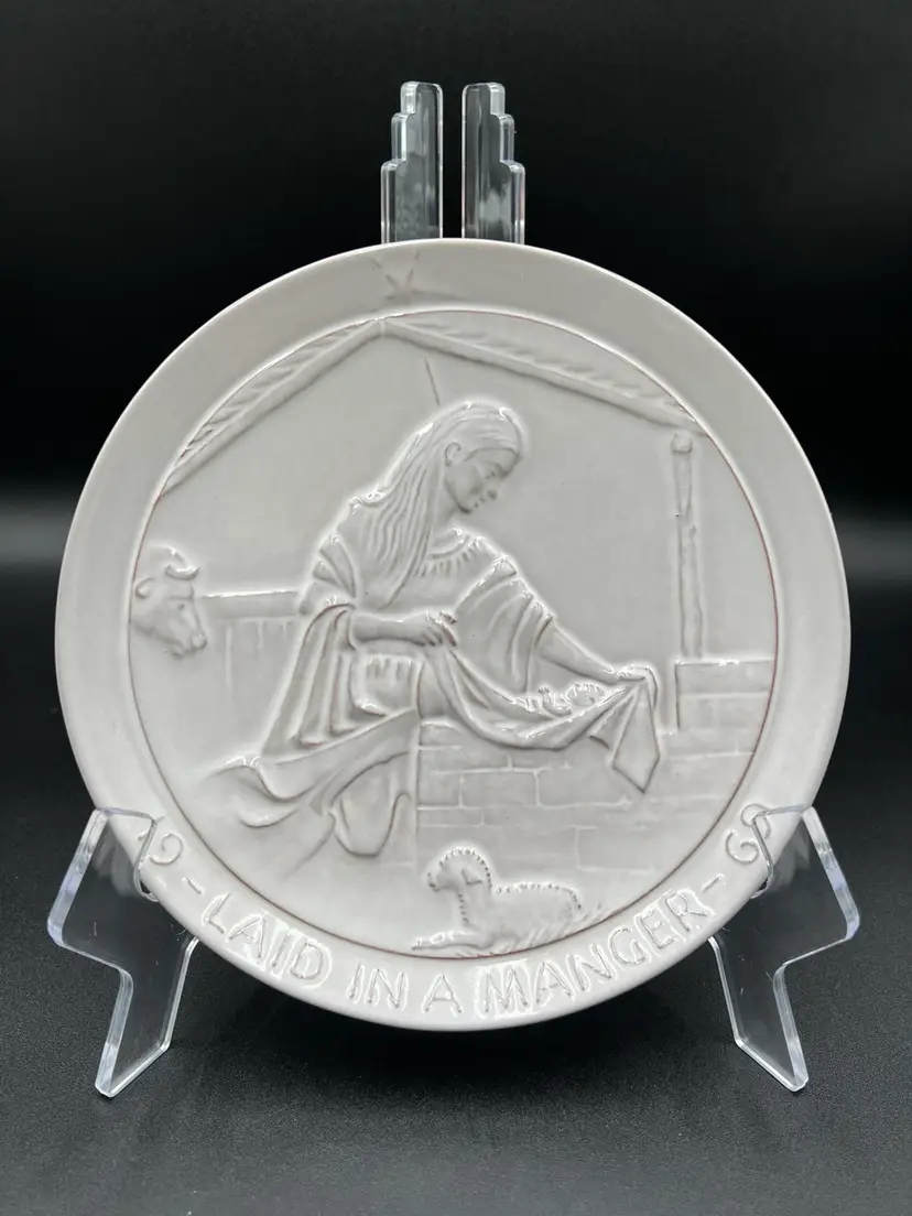Laid in a Manger - 1969 8.25” John Frank signed under glaze. Green spot under glaze (see photo). Excellent condition - No cracks, chips, or repairs. Experienced shipper.